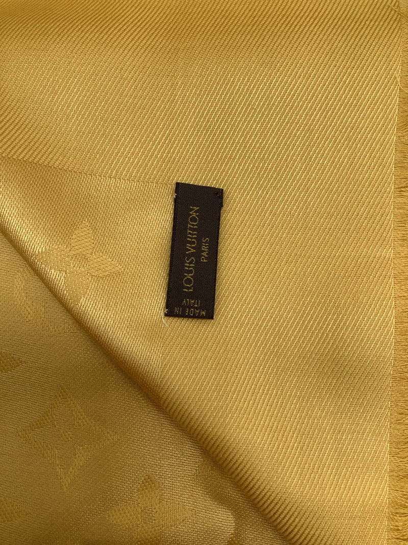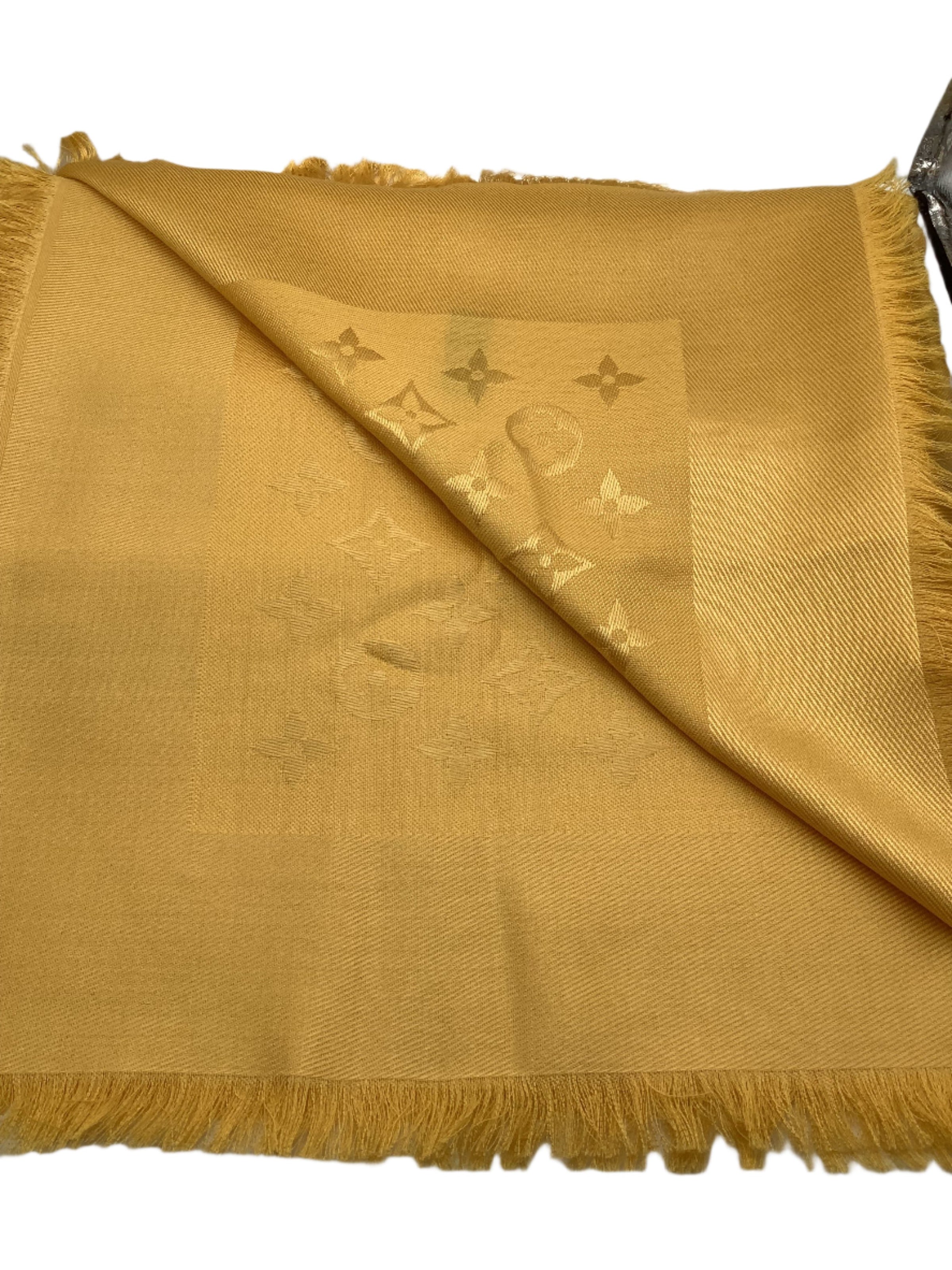 This Beautiful Yellow Louis Vuitton Silk Shawl is made from a Silk/ Wool blend, creating a luxurious and glamourous Garment. This Scarf is perfect to be worn as a Pashmina for evening wear, or to add a pop of colour to any daywear outfit.