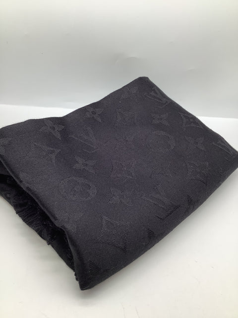 Louis Vuitton Black Silk Square Scarf, in the Iconic Louis Vuitton Monogram Print.