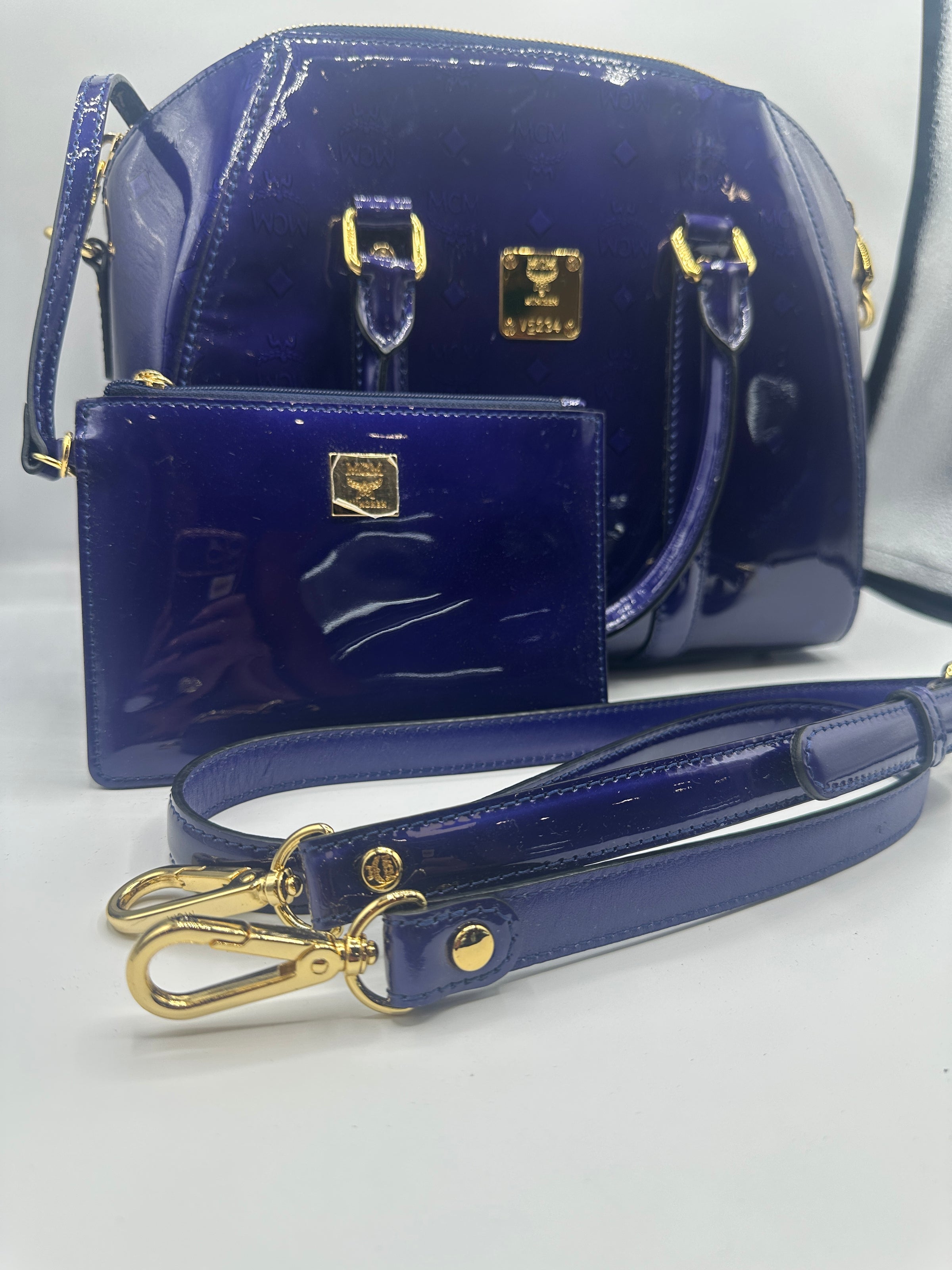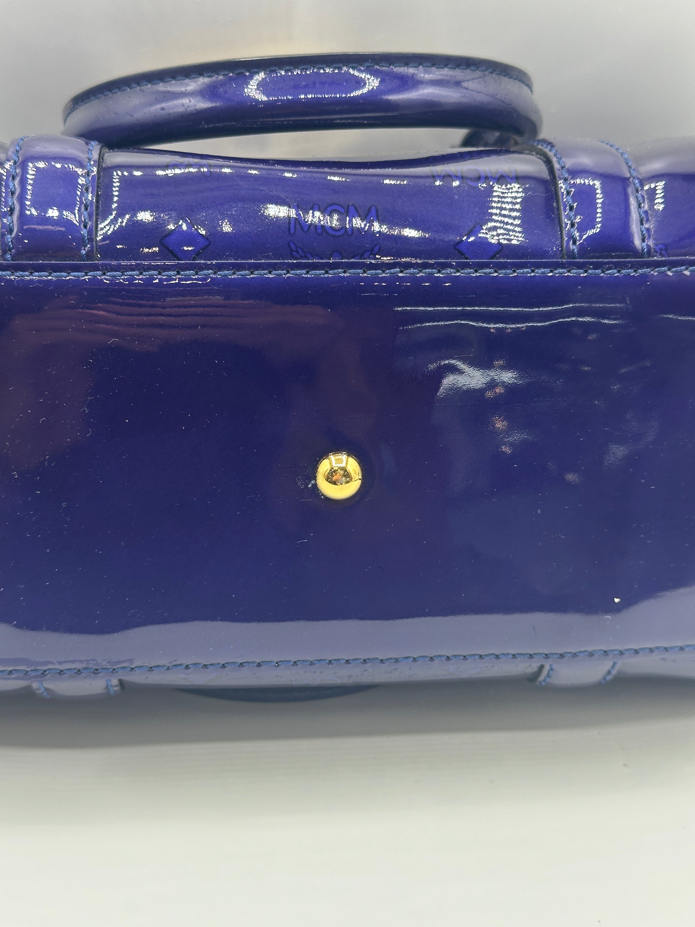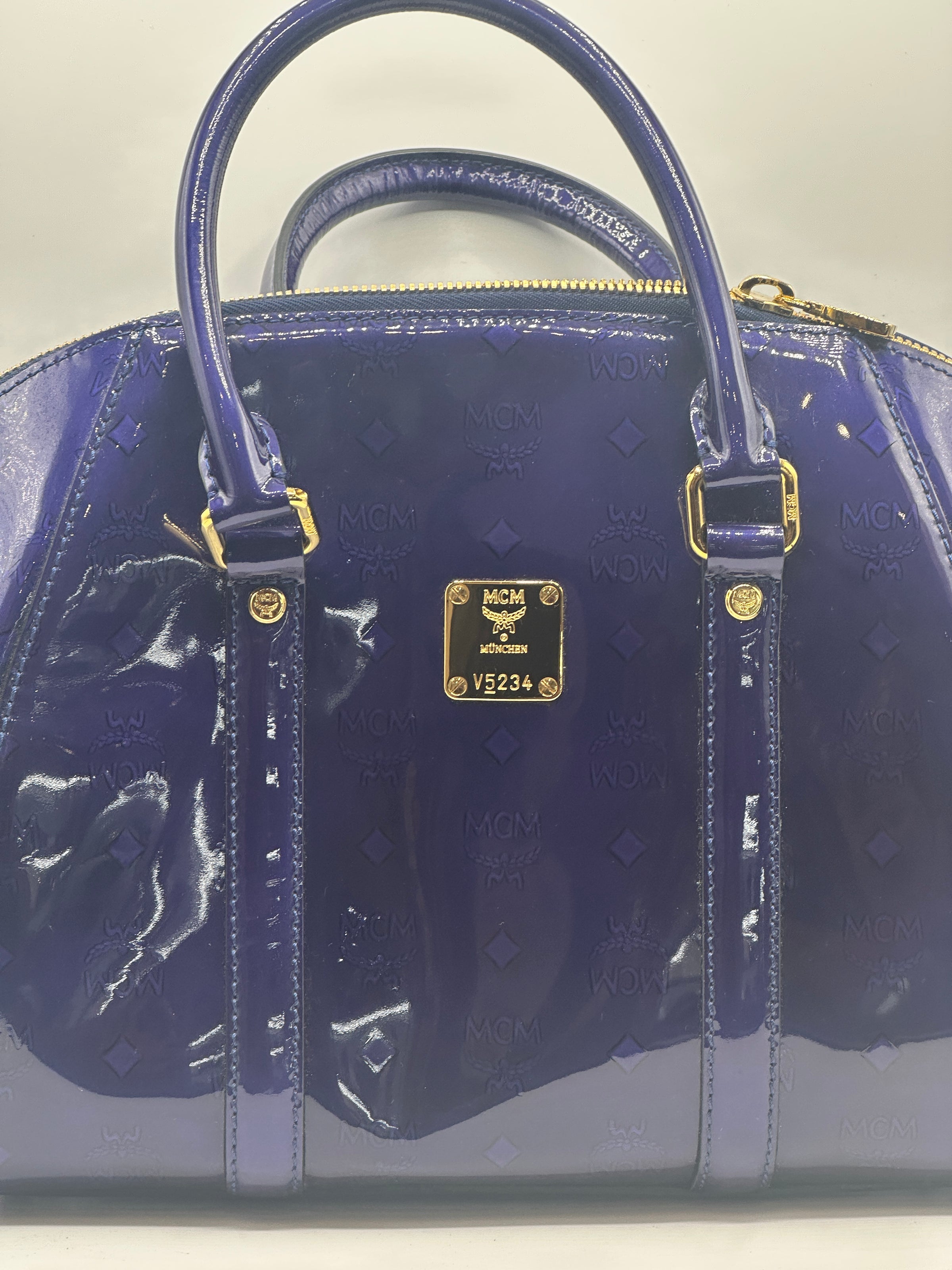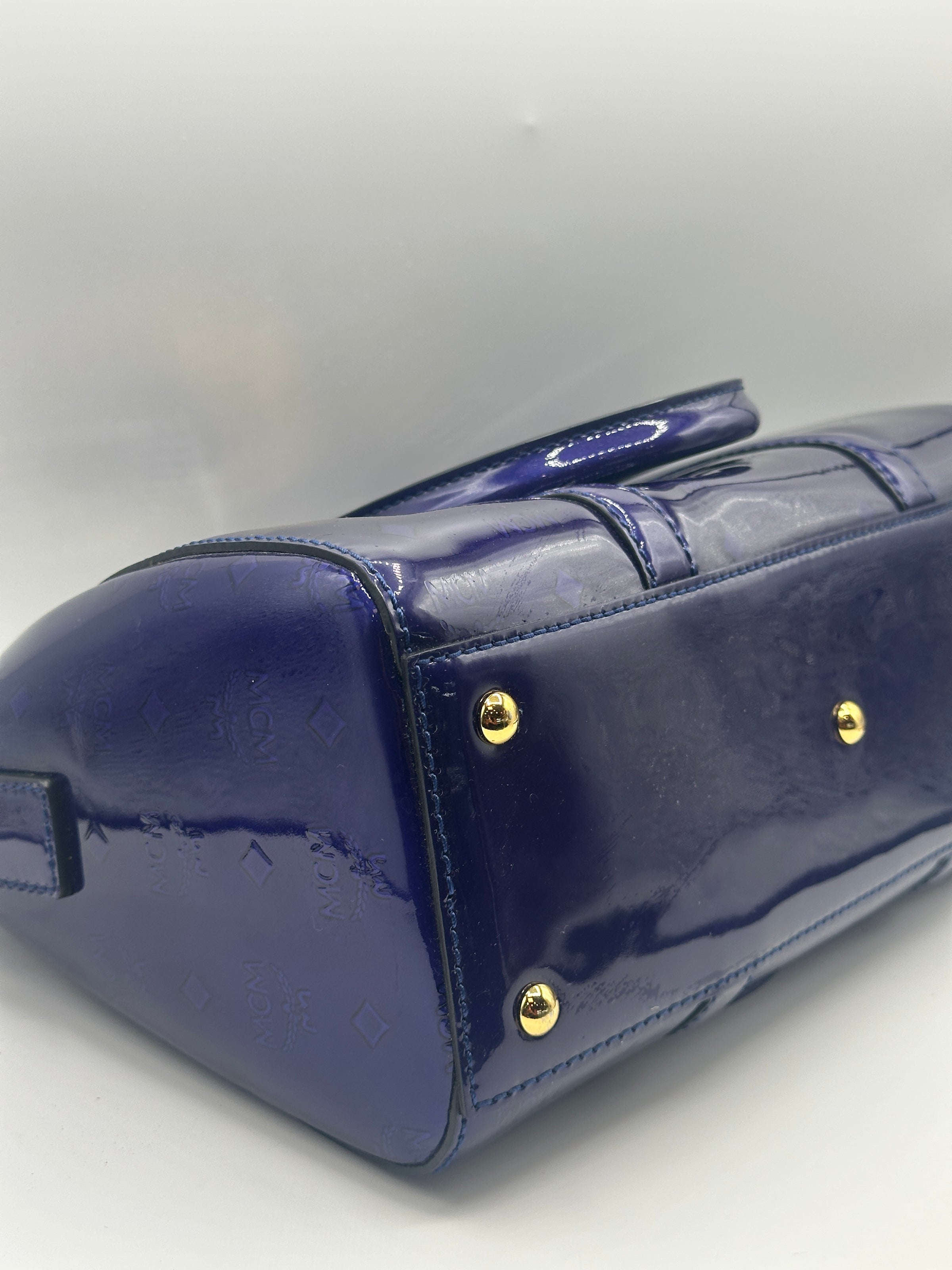 Material: Crafted from glossy patent leather, this bag showcases MCM's iconic Visetos monogram embossed throughout, offering a luxurious and durable finish.Design: The structured silhouette is complemented by dual rolled leather top handles and a detachable shoulder strap, providing versatility for hand or shoulder carry.