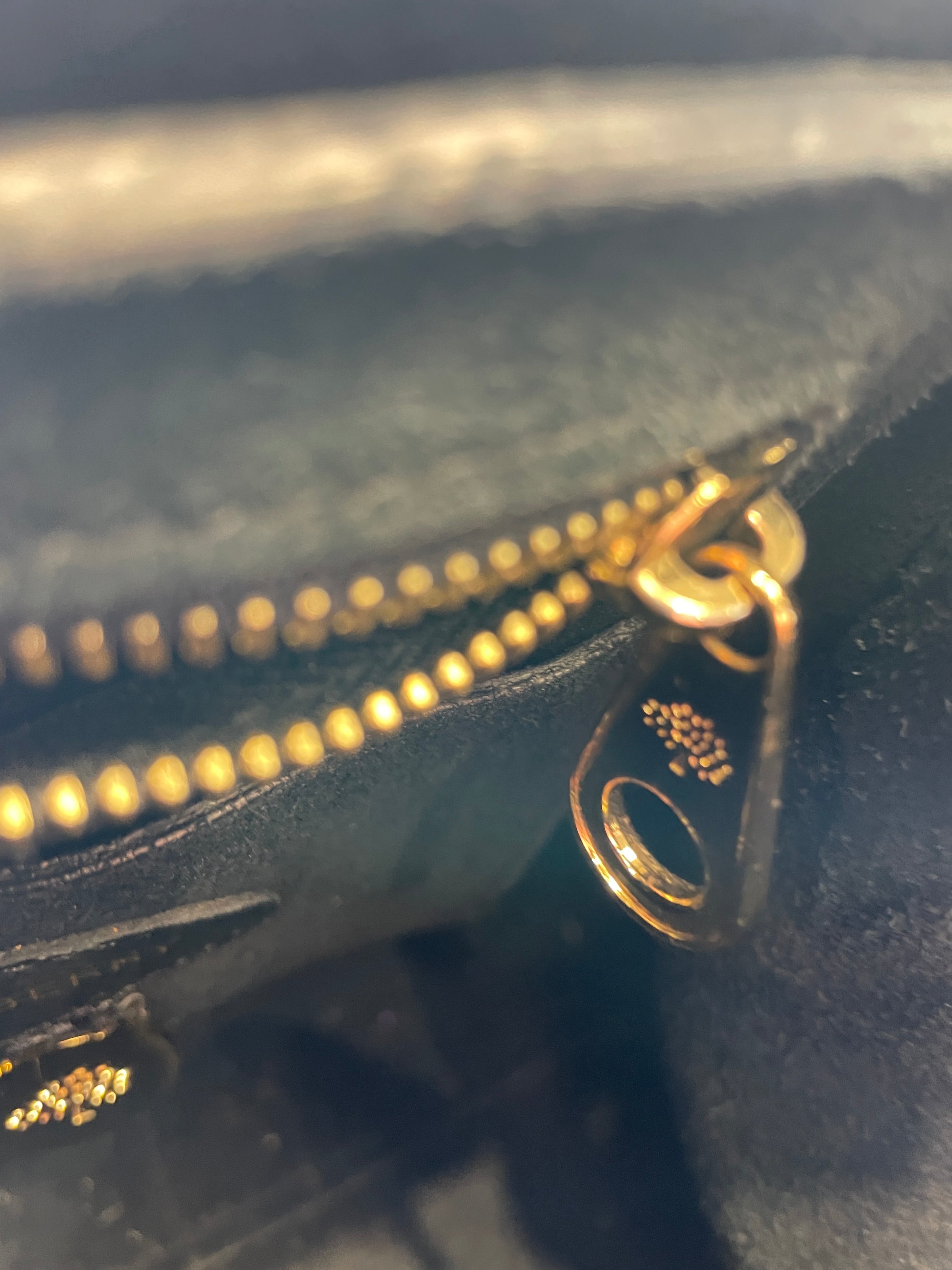 Hardware: Accented with gold-tone hardware, enhancing its luxurious appeal.