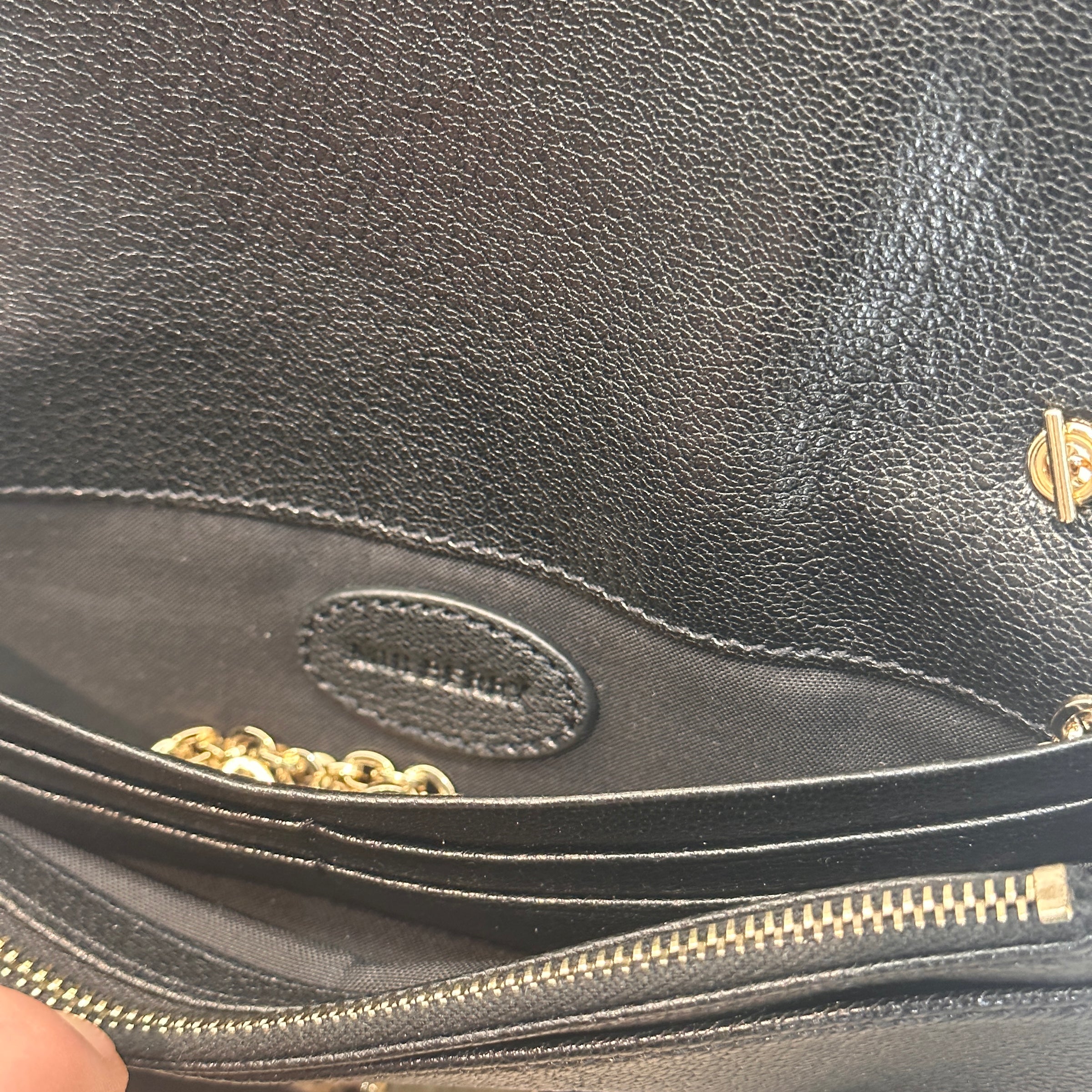 Mulberry Bayswater Clutch. This bag features gold hardware with a good chain that can be detached so to be used as a clutch or a cross body bag.