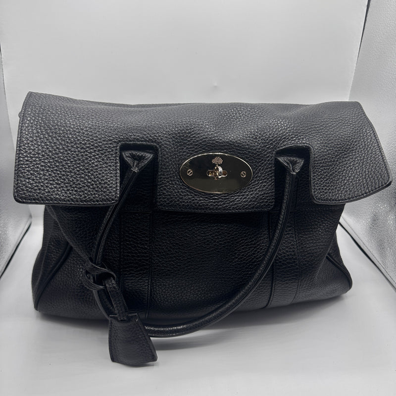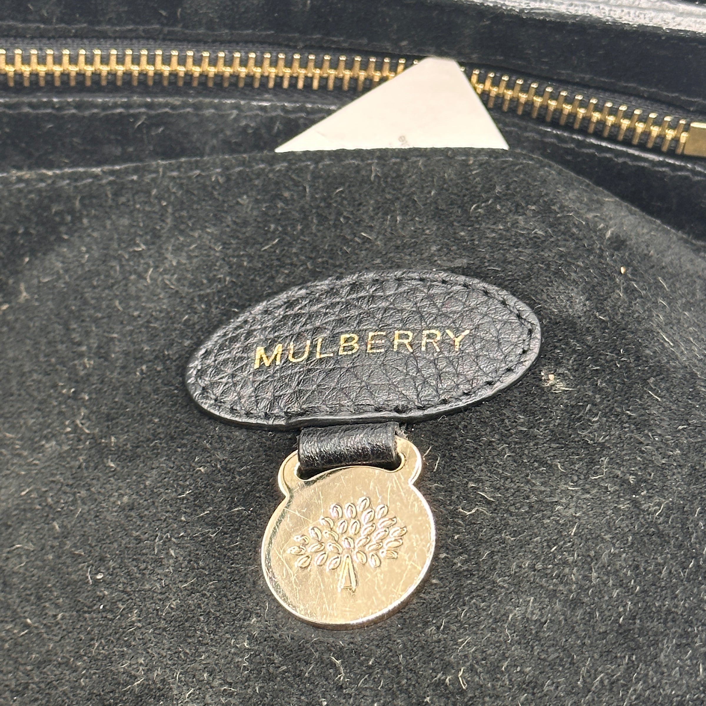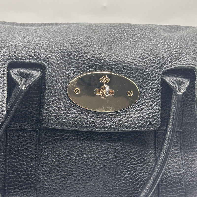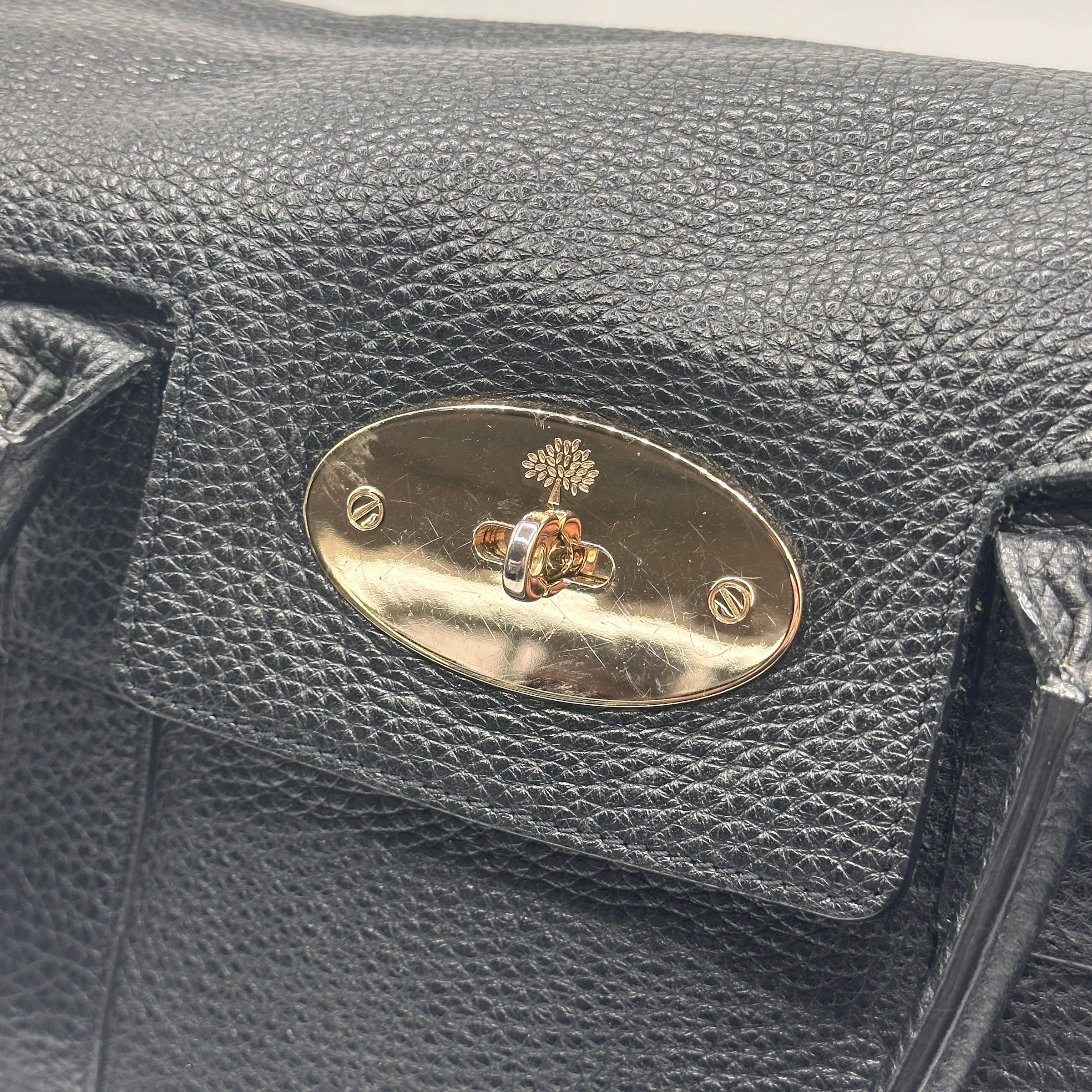Beautiful classic Mulberry Bayswater Handbag in black leather with polished gold hardware.