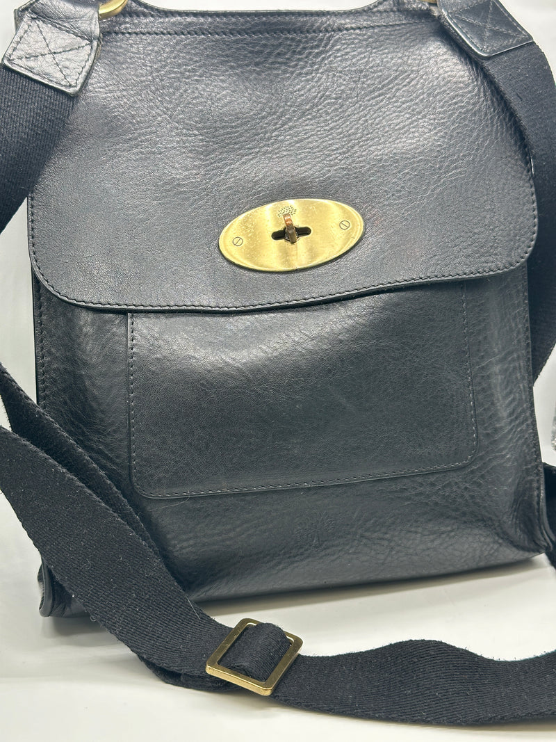 Mulberry Antony Messenger Bag in Black Classic Grain with Brass Hardware