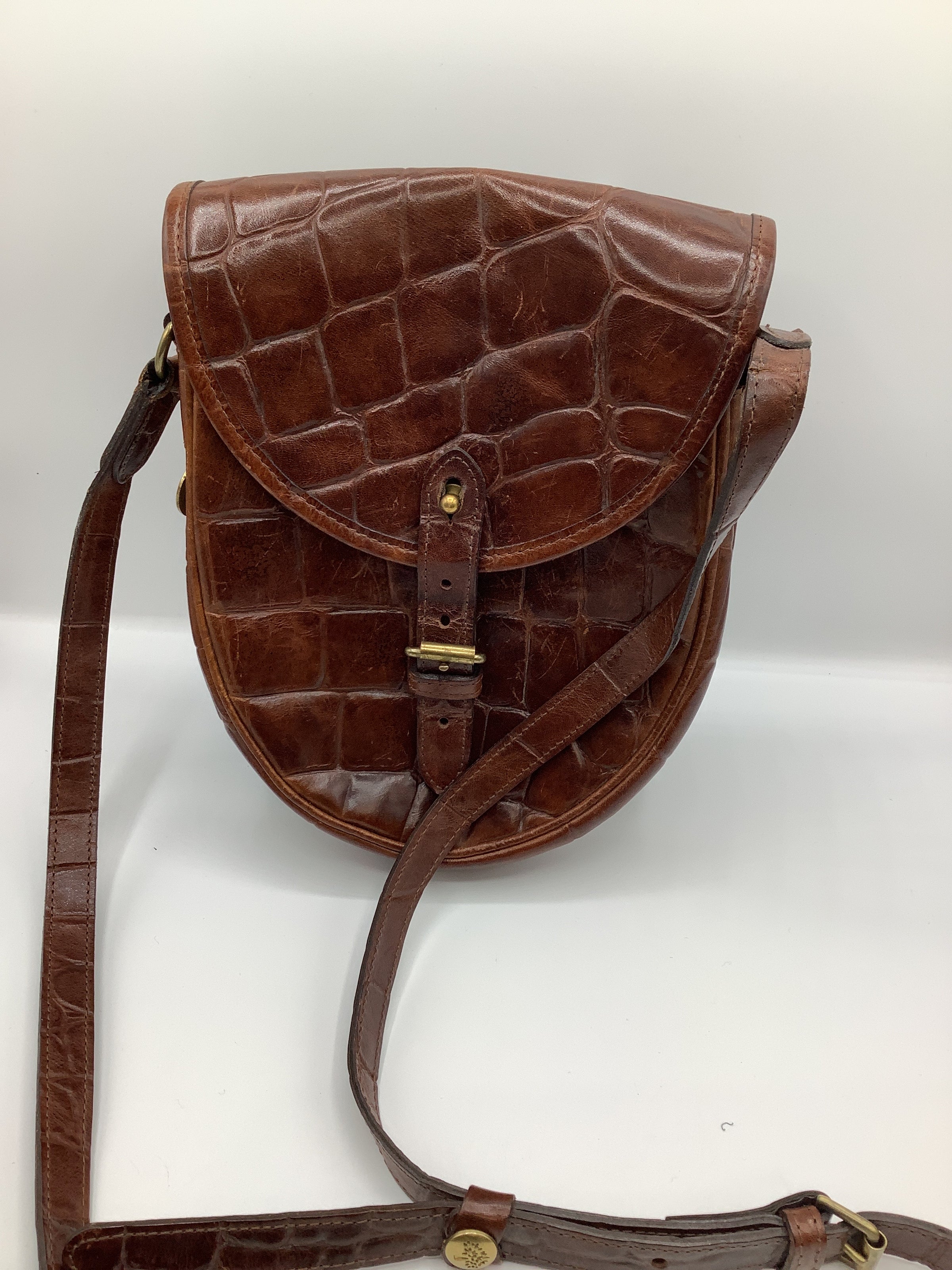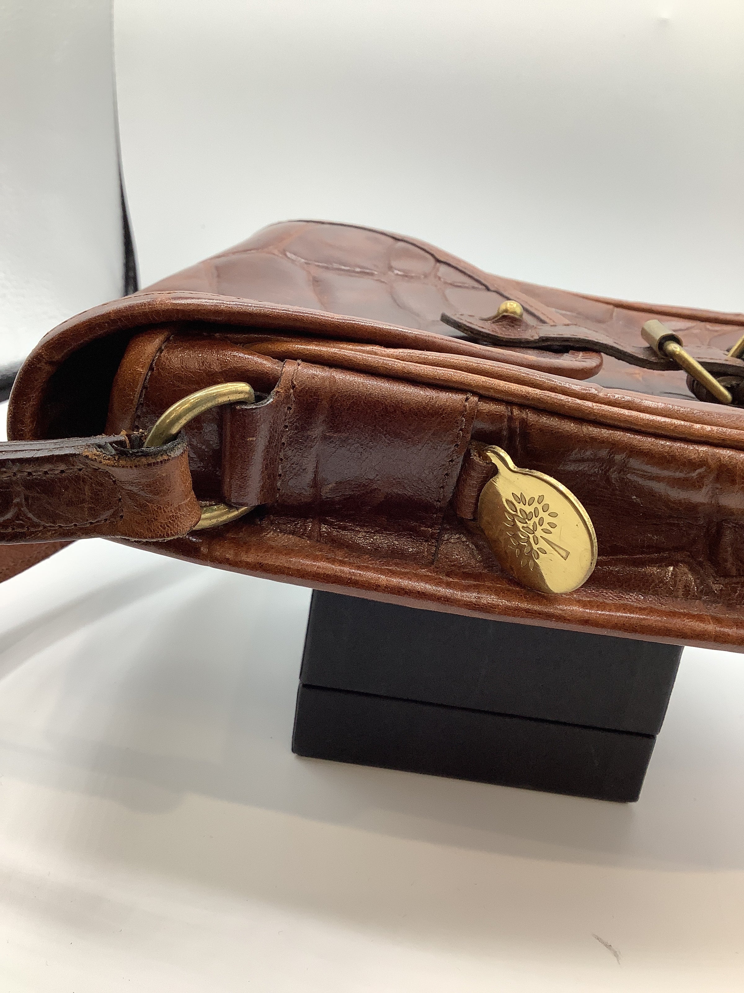 This bag comes from a period when Mulberry under its early design ethos focused on quality leather craftsmanship, understated British elegance and functional versatility. The croc-embossed finish speaks to Mulberry’s tradition of leather mastery and its ability to reinterpret classic textures with subtle luxury. Owning a vintage Mulberry in this form — croc-embossed leather with tartan lining — connects the wearer with the brand’s sartorial history and reflects a quietly refined aesthetic that has endured over decades.