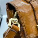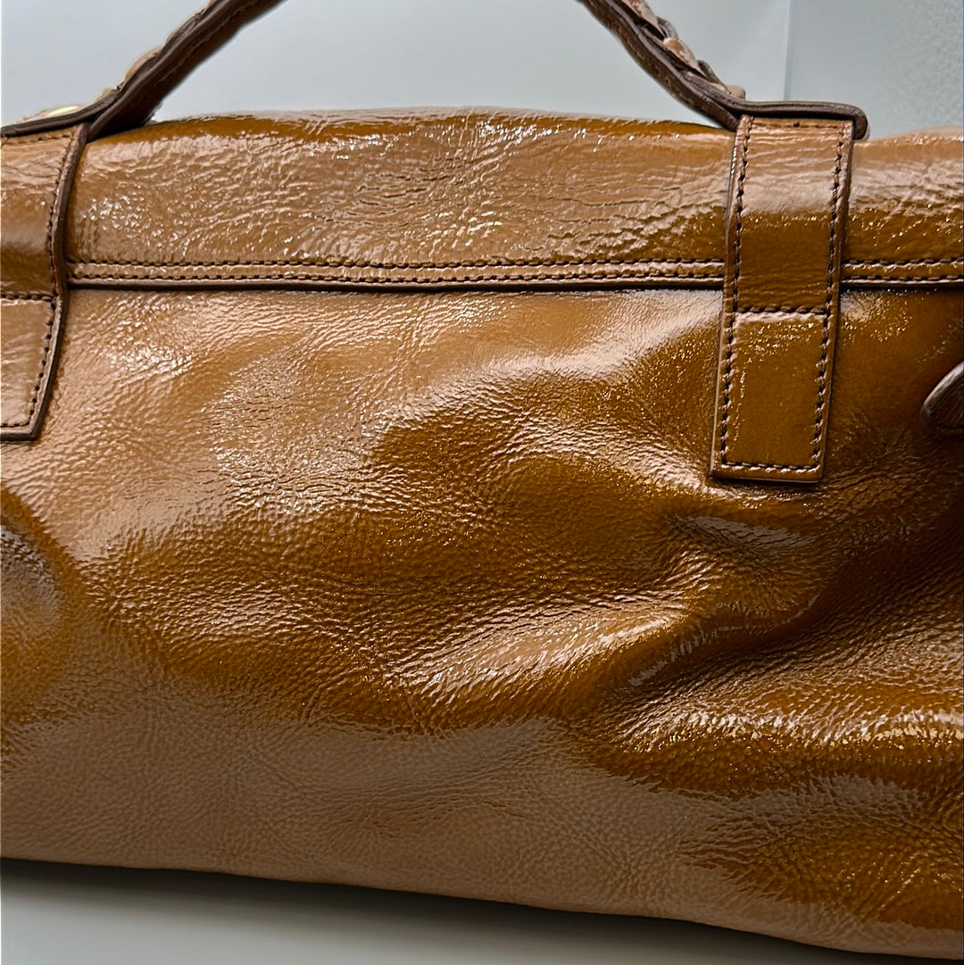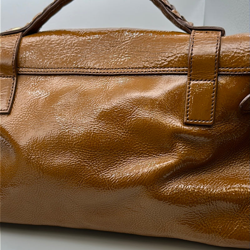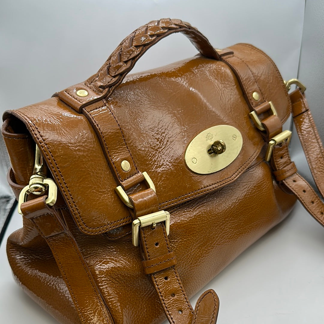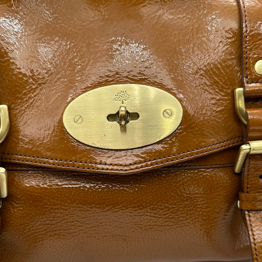 This stunning brown leather Mulberry handbag has an adjustable shoulder strap for easy carrying on the body, the interior of the bag is lined in Mulberry logo fabric and has a zipped pocket that runs the full width of the bag. Oval leather tab embossed "Mulberry" and brass metal disc embossed Mulberry Bush and on the other side the serial number.