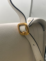 Materials & Design: The Mulberry Sadie Satchel 50th Anniversary Edition is meticulously crafted from white goat-printed leather, offering a distinctive texture and a refined aesthetic. The bag features the signature Typography Lock hardware in aged brass, adding a touch of elegance to its structured silhouette.