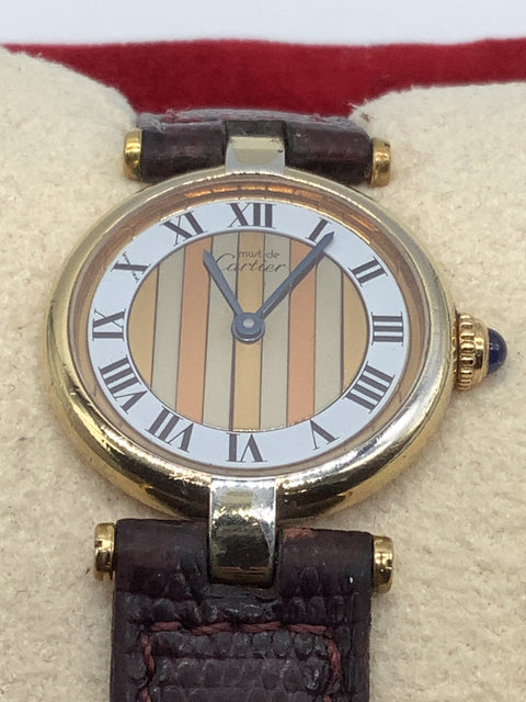 Founded in 1847 by Louis-François Cartier in Paris, Cartier has established itself as a premier luxury brand, renowned for its exquisite jewellery and watches. The 'Must de Cartier' line, introduced in the 1970s, aimed to offer the brand's timeless elegance to a broader audience. The vermeil watches from this collection, combining sterling silver with gold plating, exemplify Cartier's dedication to craftsmanship and design.