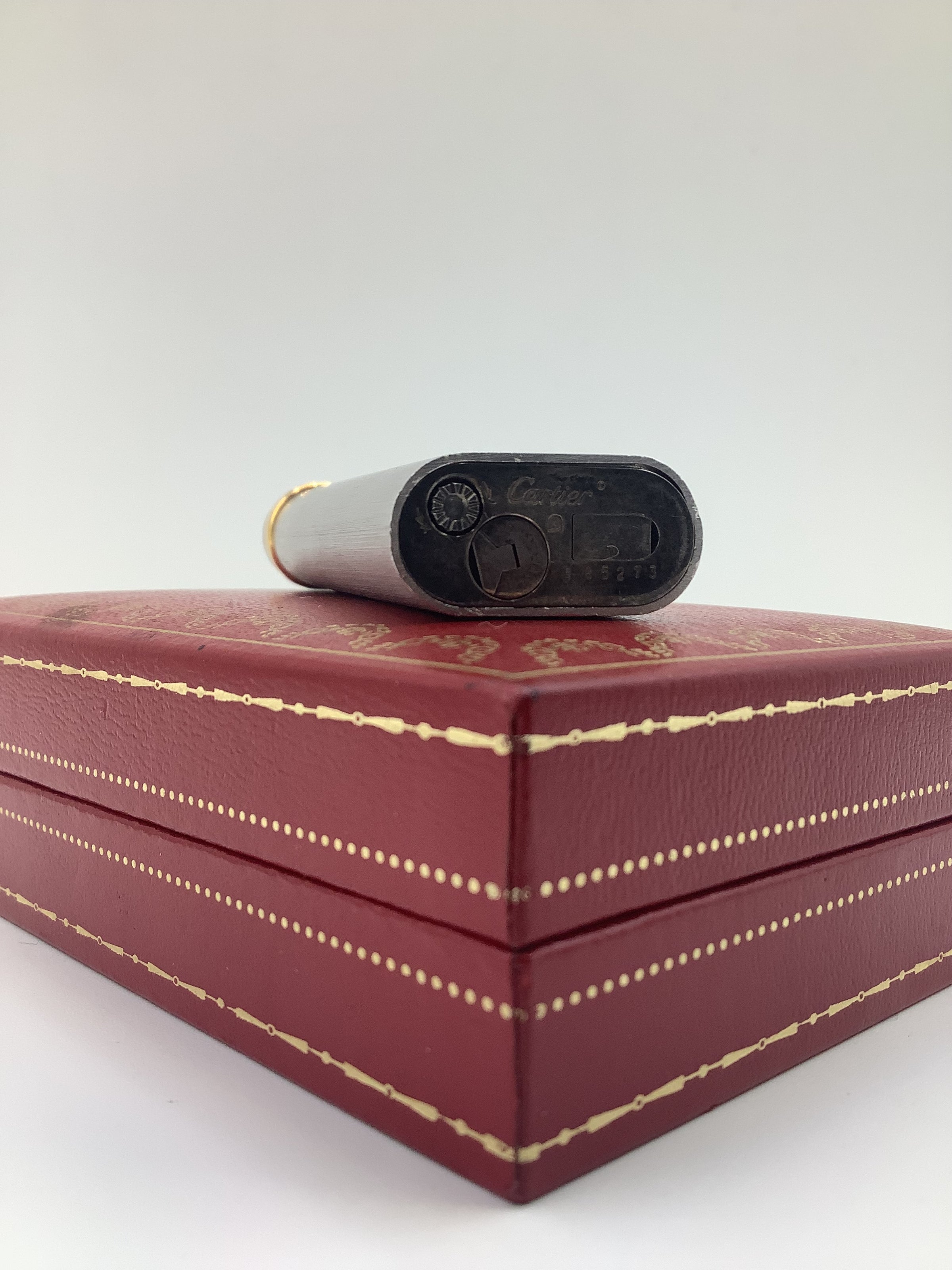 This elegant Cartier lighter is a testament to timeless sophistication and craftsmanship. Featuring a sleek, brushed stainless steel body accented with luxurious gold detailing, it embodies understated refinement. The signature Cartier engraving on the gold band adds an exclusive touch, signifying the brand’s heritage of excellence. Designed for both collectors and connoisseurs, this lighter is not just a functional piece but a statement of style and prestige. Whether displayed or carried as a daily essential, it reflects a perfect balance of durability and luxury.