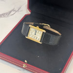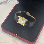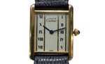 2. Dial: Usually a simple and elegant dial, often white or cream with gold or silver-tone markers, with the famous Cartier logo.