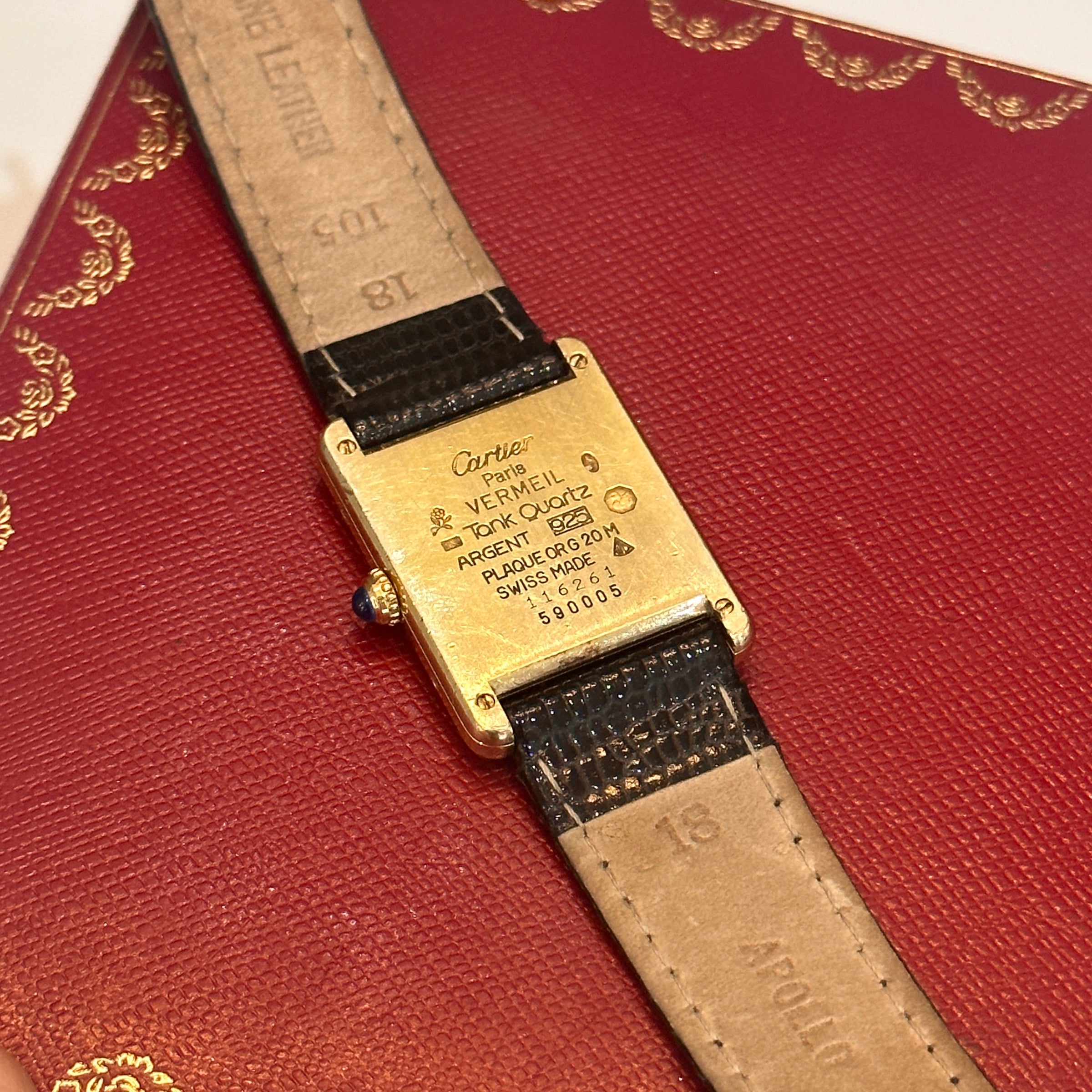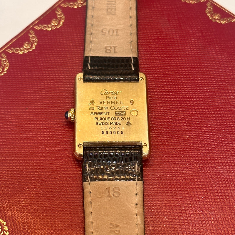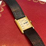 The outer case of the Must de Cartier Tank looks exactly the same as the Tank Louis Cartier with the rounded case shape. Where Cartier was able to make this watch more affordable was in the case material and the movement. Instead of 18k solid gold or platinum used in the Tank LC, the Must de Cartier Tank used a vermeil silver case that was gold plated to achieve the same luxurious look as the Tank LC.