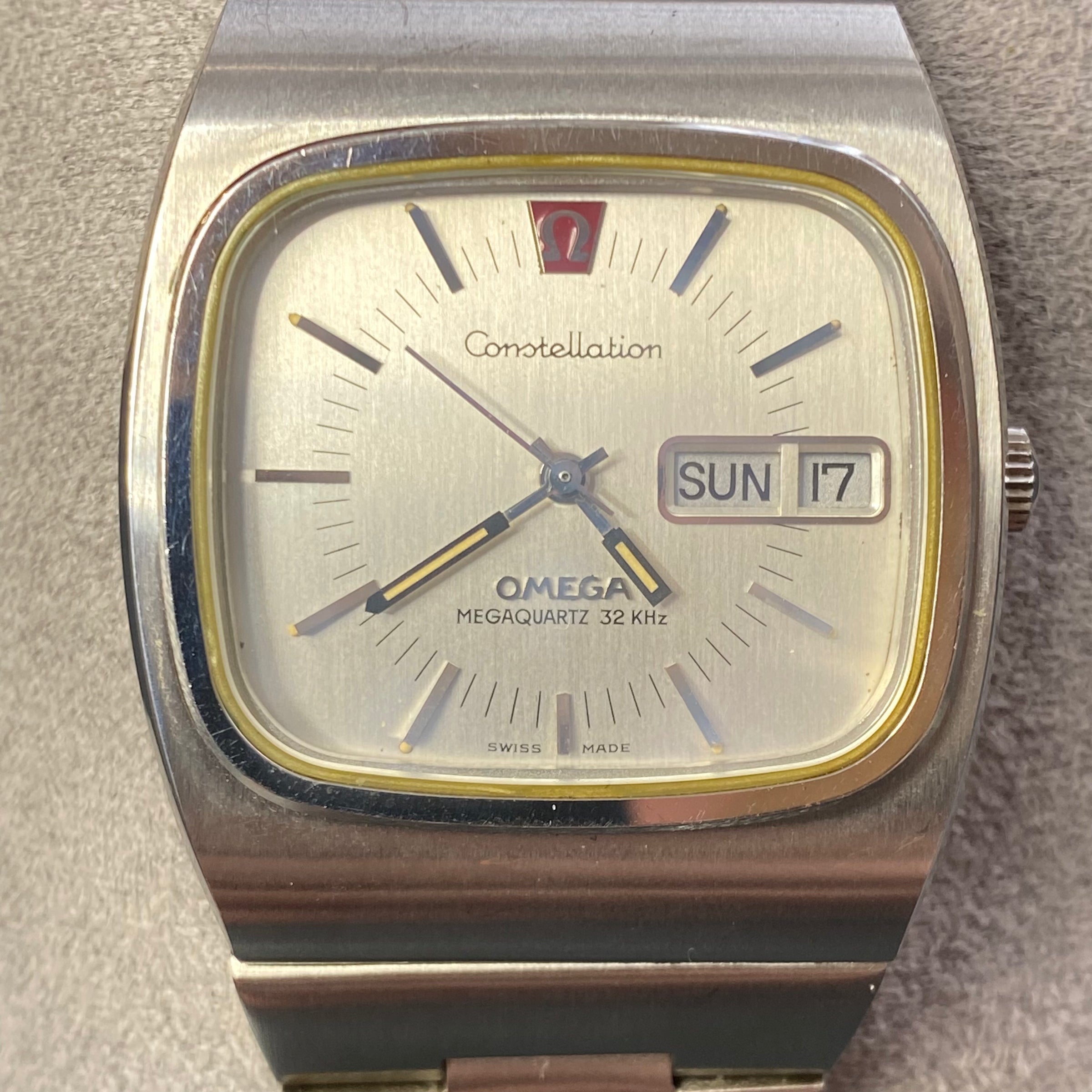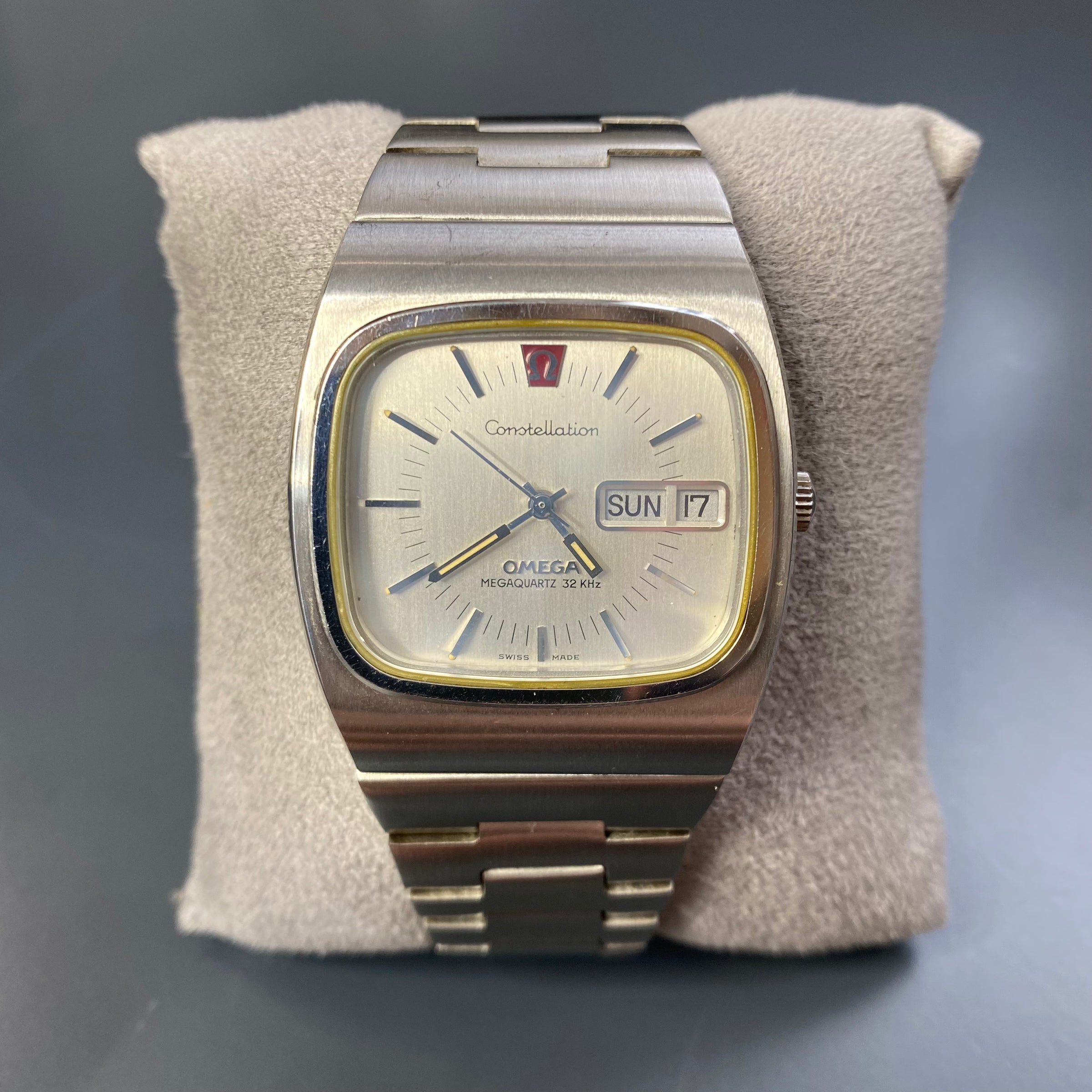 This stunning and retro Omega Constellation Megaquartz 32KHZ, reference ST3690811 has the desirable TV screen style case and features a day and date complication. comes in great condition, Just having been released from a private meticulous collector.