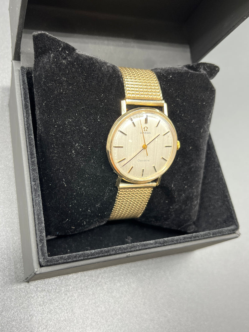 A full 18ct Gold Omega Geneve with a full 18ct gold bracelet.