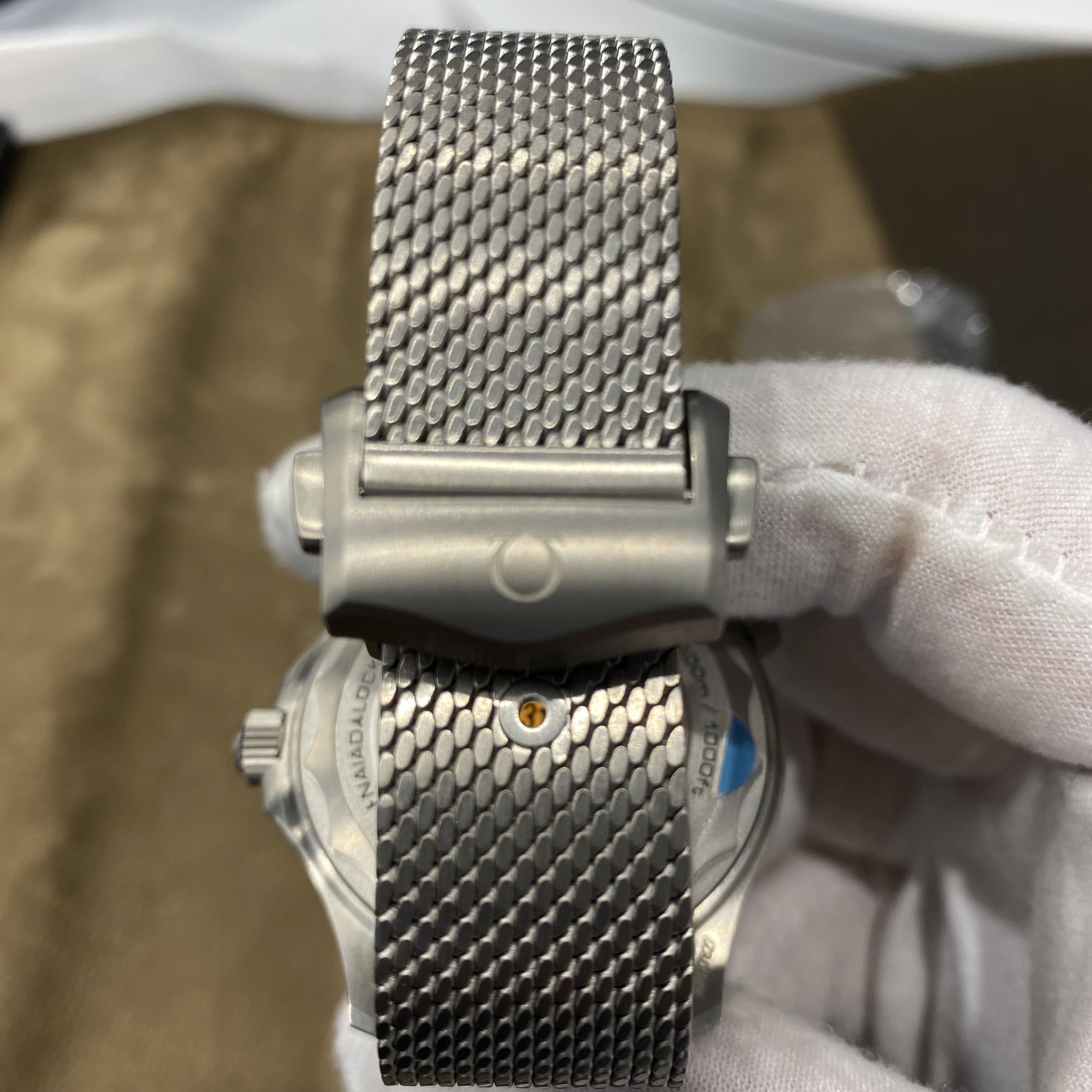 Slightly slimmer than the standard Diver 300M models thanks to the doming of the sapphire-crystal glass, it is presented on a Grade 2 Titanium mesh bracelet with innovative adjustable buckle.