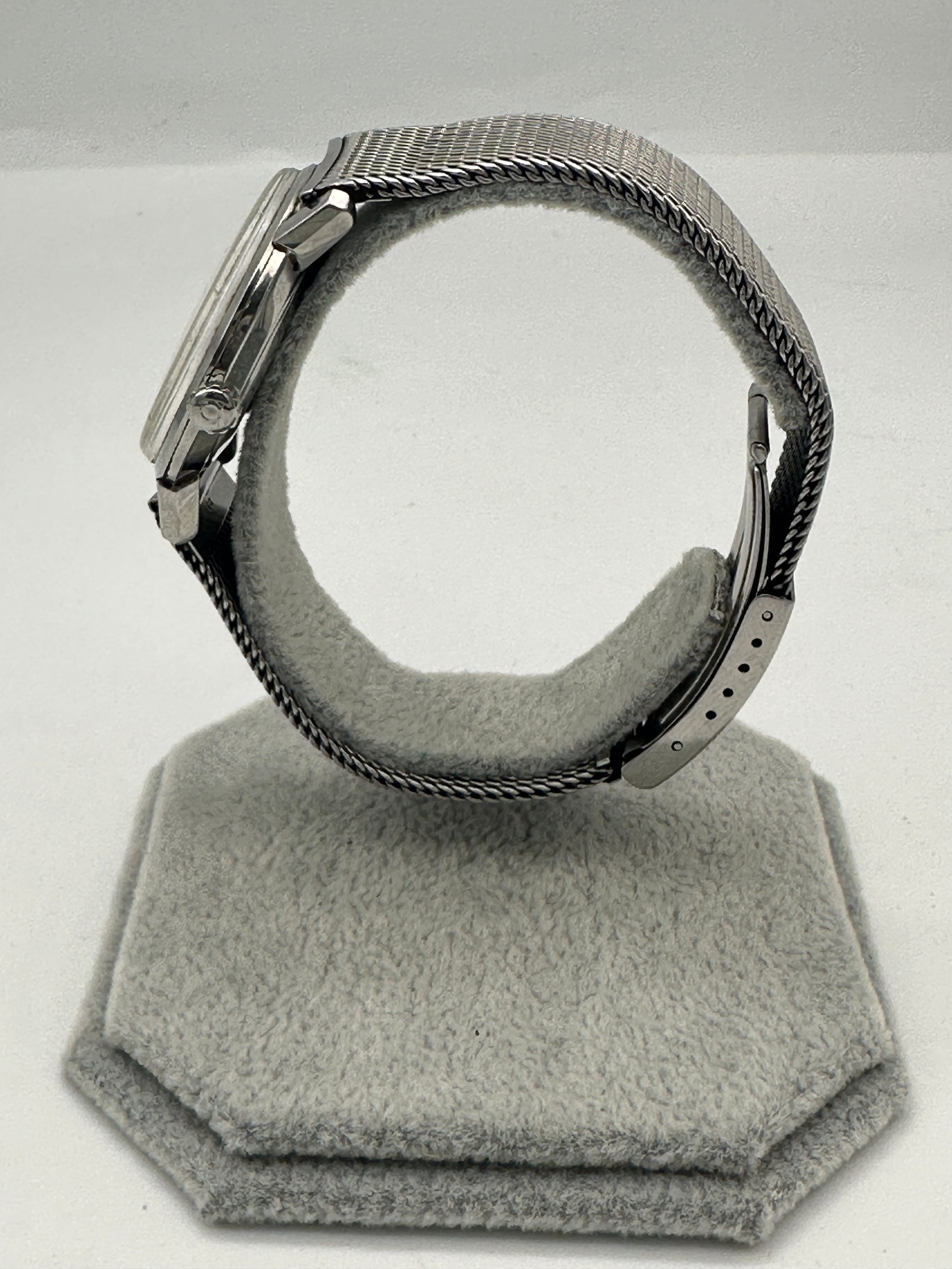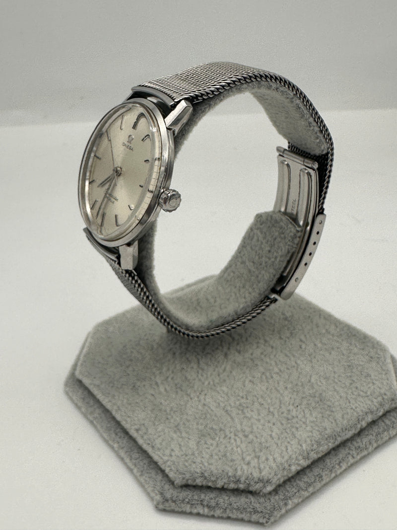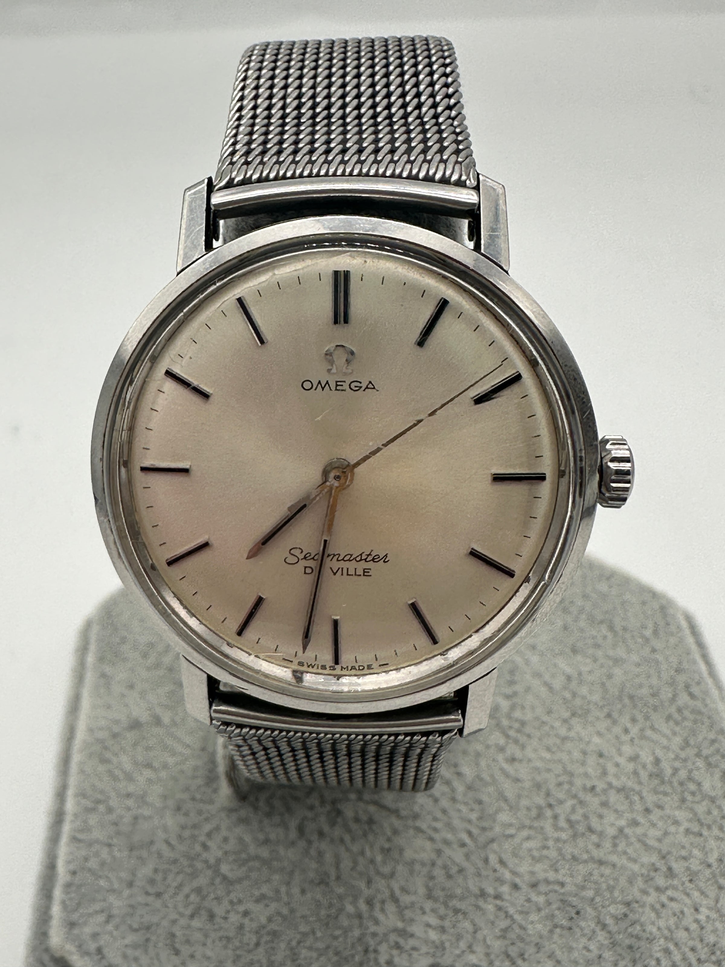 Omega Seamaster De Ville Watch. It has a silver dial and is made of steel. This watch is vintage going back to the 1960s.