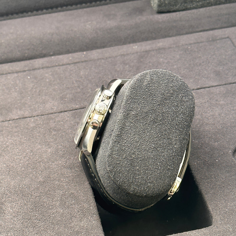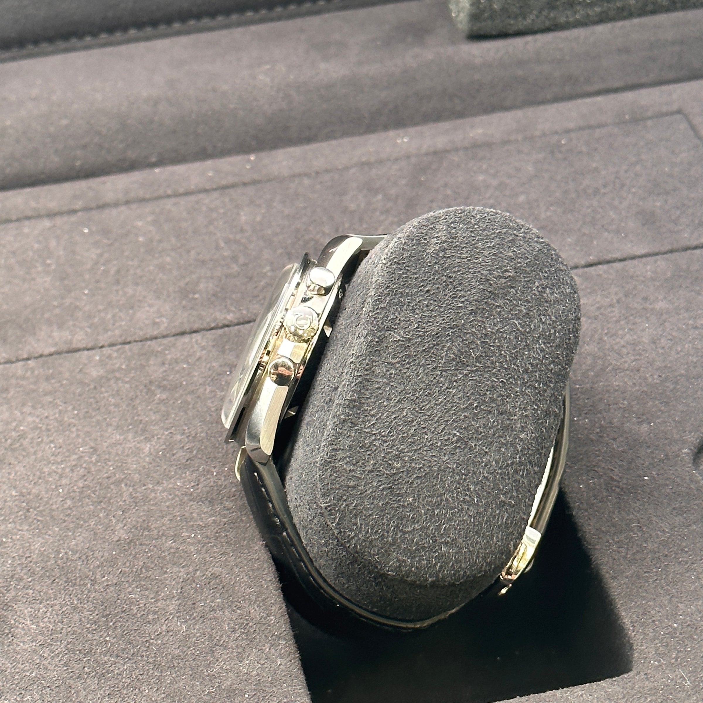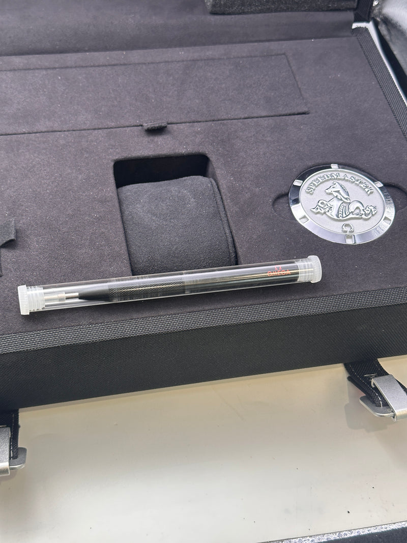 The watch is driven by the OMEGA Co-Axial Master Chronometer Calibre 3861, which powers the small seconds sub-dial, 30-minute recorder and 12-hour recorder, along with the central chronograph function