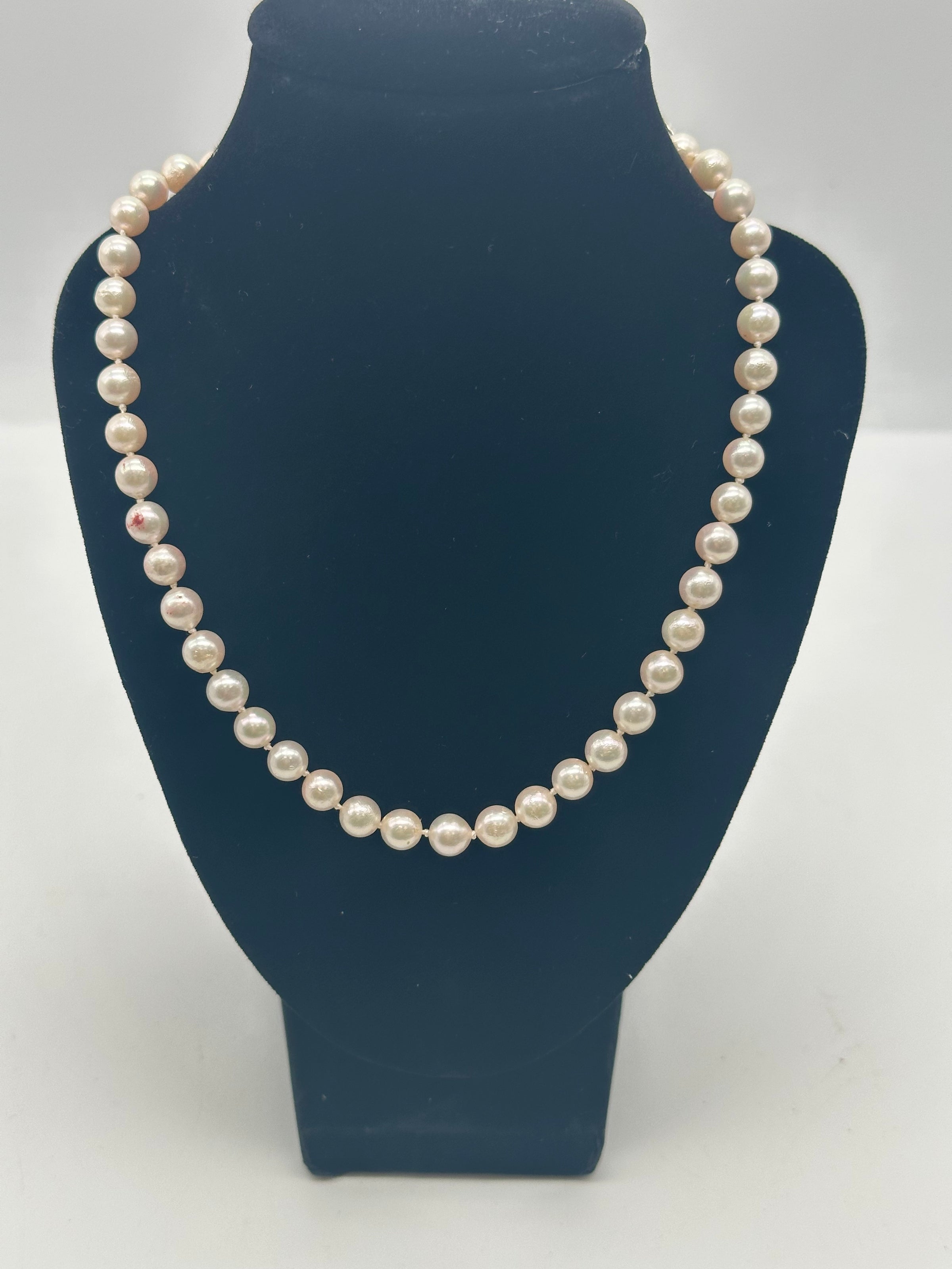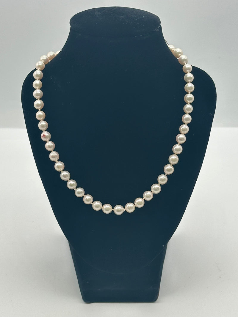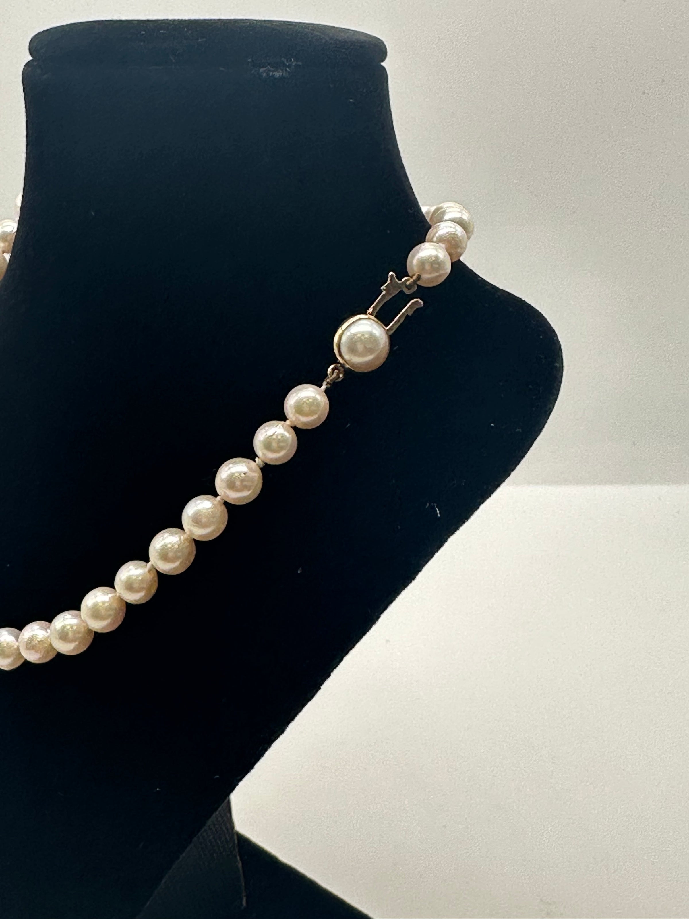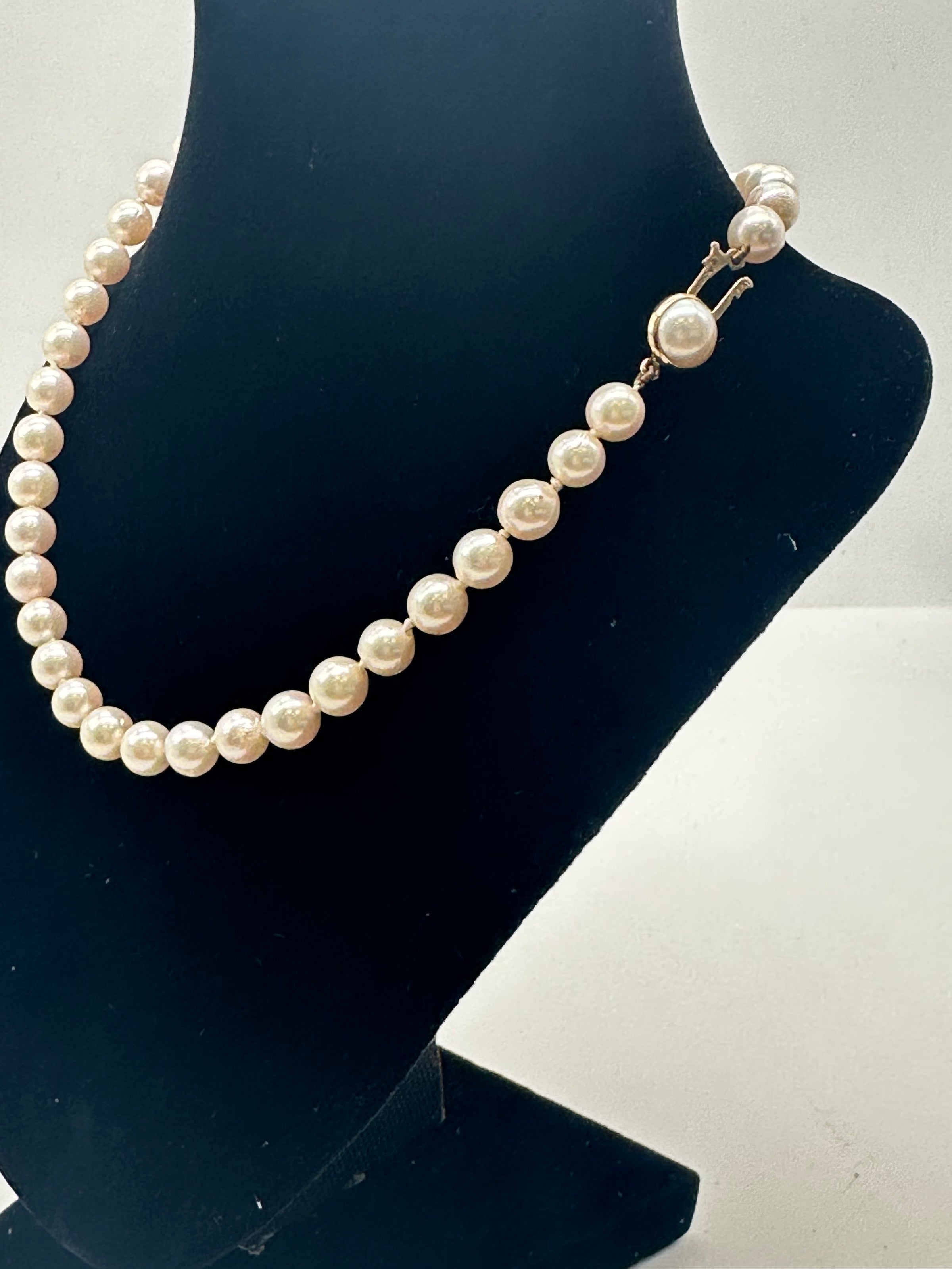 Cultured String Of Pearls With A 9ct Yellow Gold Delicate Pearl Clasp 16 Inch And 5mm Uniformed Pearls.