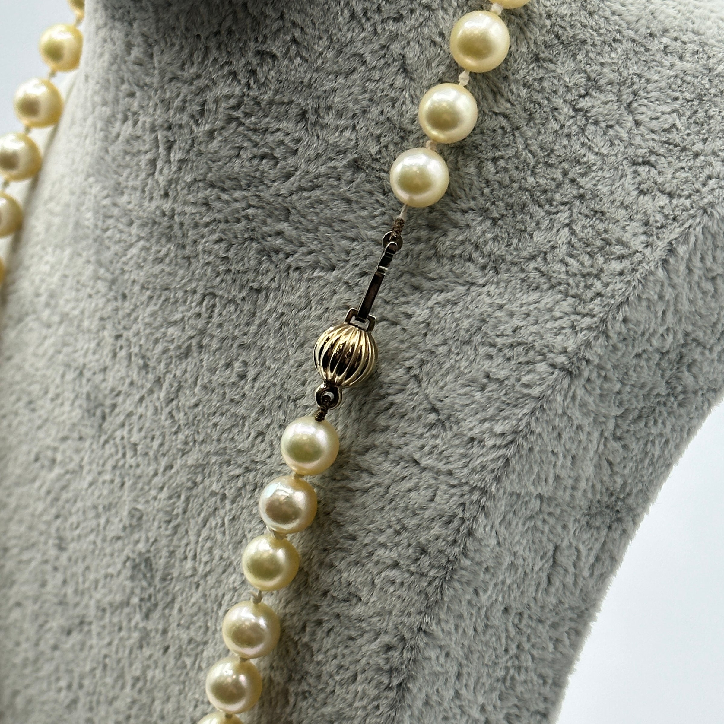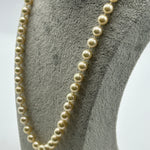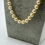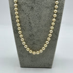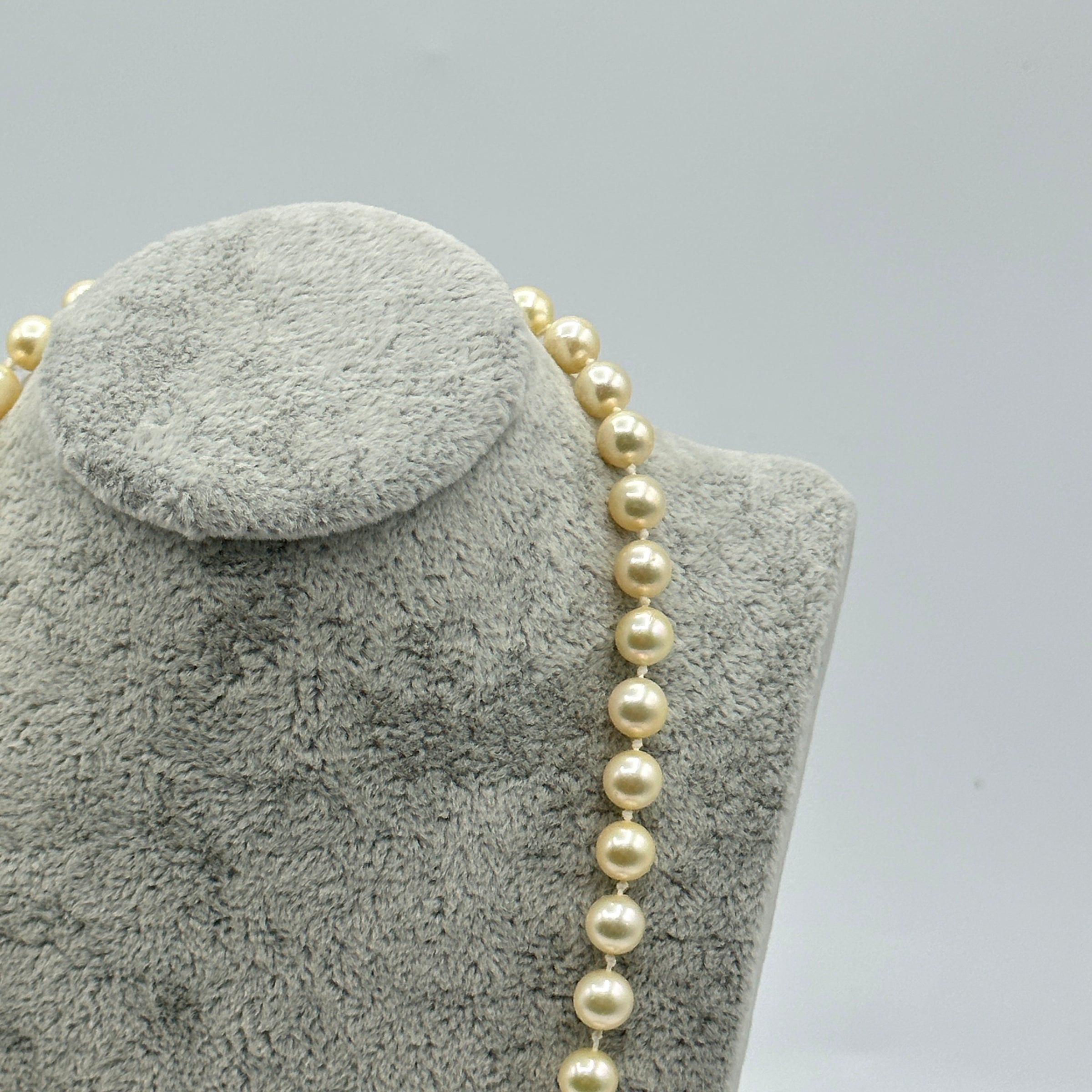 This elegant pearl necklace with a 9ct yellow gold clasp is a refined accessory, perfect for those who appreciate timeless beauty and understated luxury.