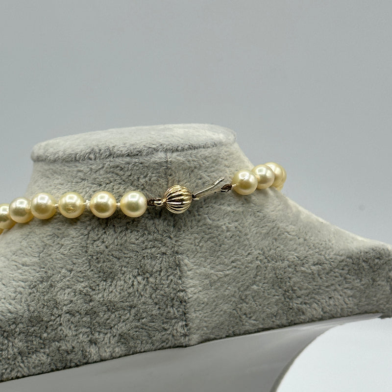 This piece represents the enduring tradition of fine pearl jewellery, combining classic materials with expert craftsmanship. Pearl necklaces have long symbolised grace and sophistication, often handed down as heirloom pieces across generations. The addition of 9ct yellow gold enhances its timeless appeal, providing both beauty and durability.