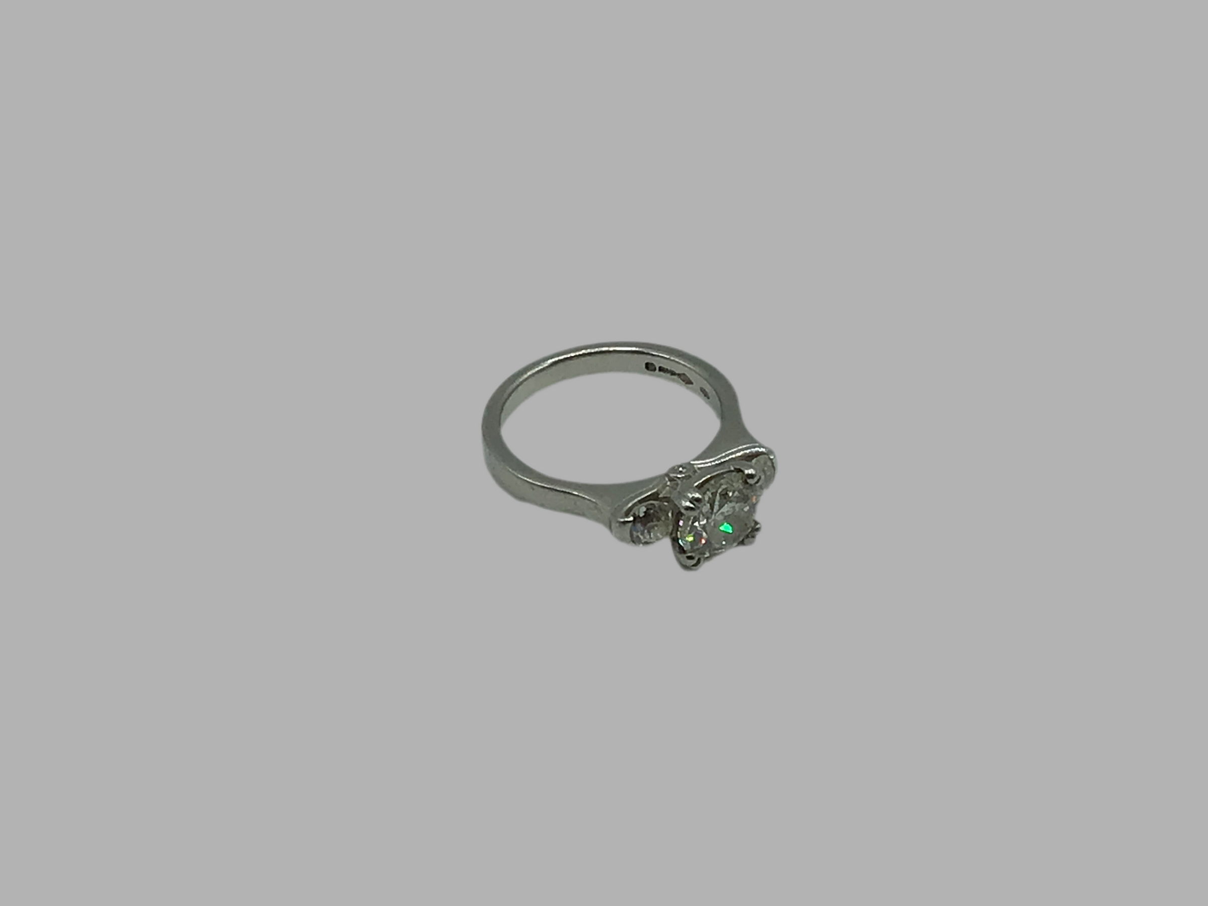 Old cut diamonds are celebrated for their antique charm, soft faceting, and gentle sparkle—typically hand-cut and uniquely individual. This ring reflects the refined artistry of a bygone era, where every detail was crafted for both beauty and sentiment. The platinum mount offers strength and lasting brilliance, making this piece both romantic and durable—ideal for those who appreciate vintage craftsmanship with timeless appeal.