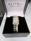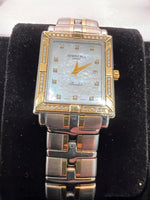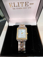 A beautiful stainless steel and gold coloured watch and bracelet, with crystals to the bezel. second hand but well looked after
