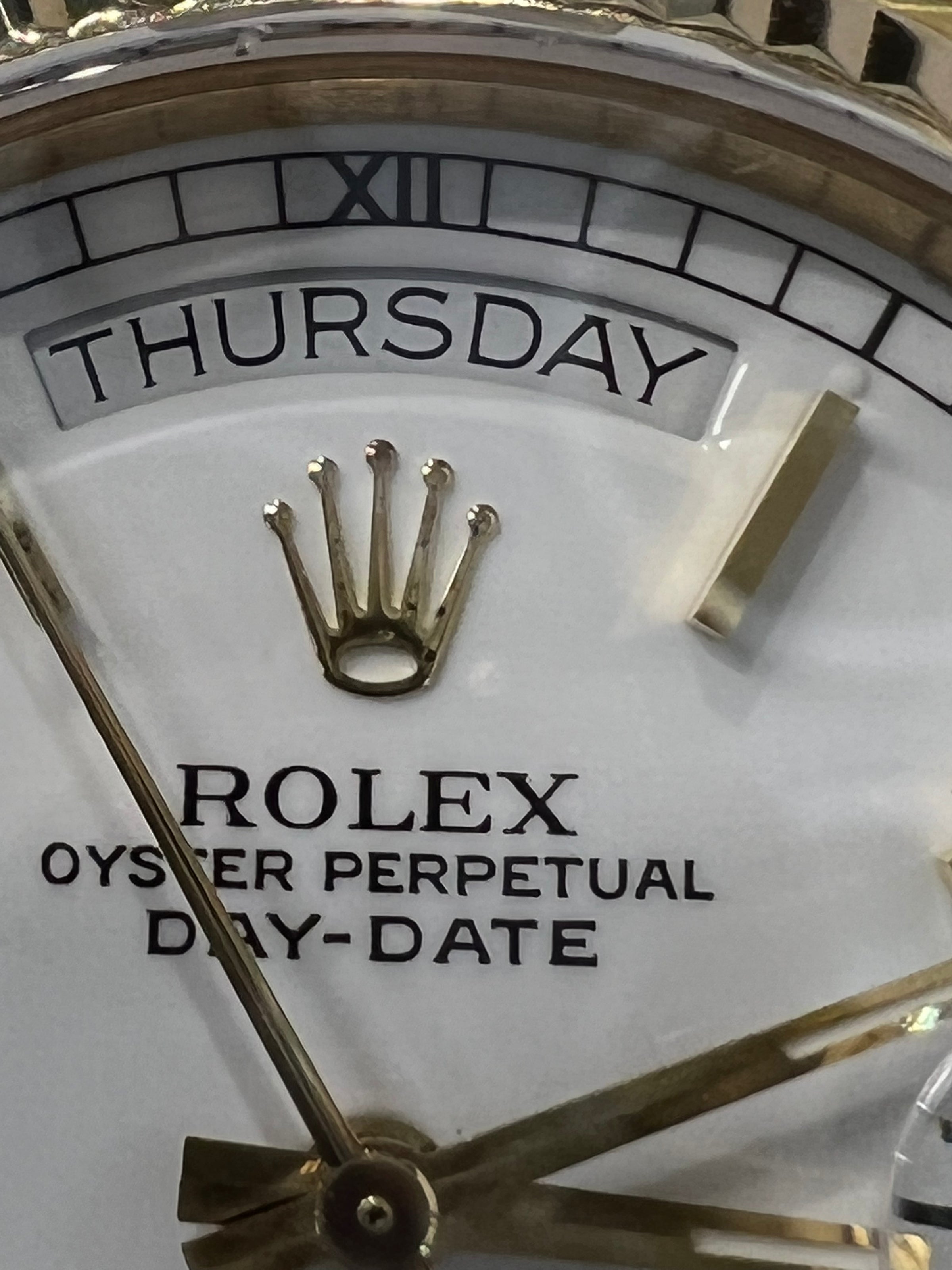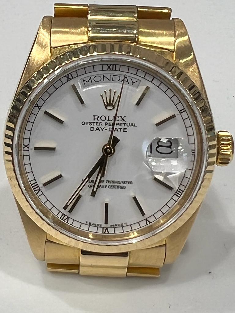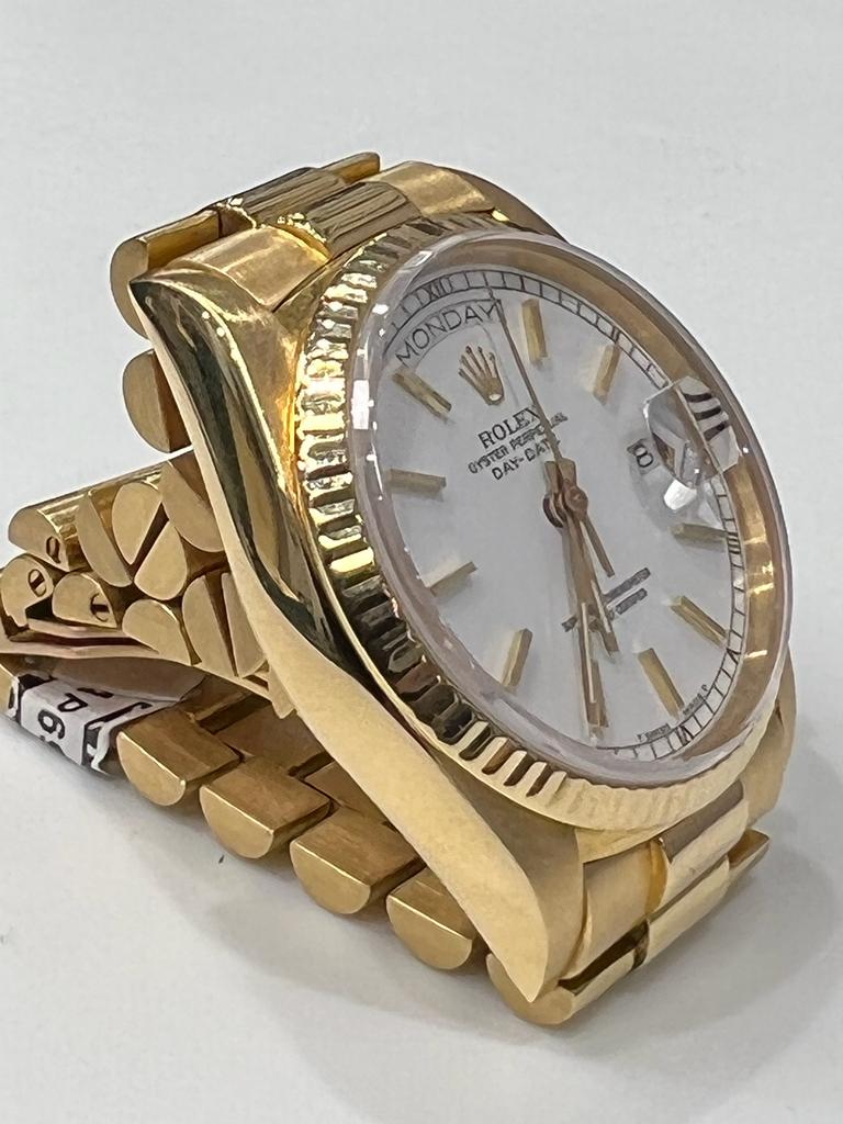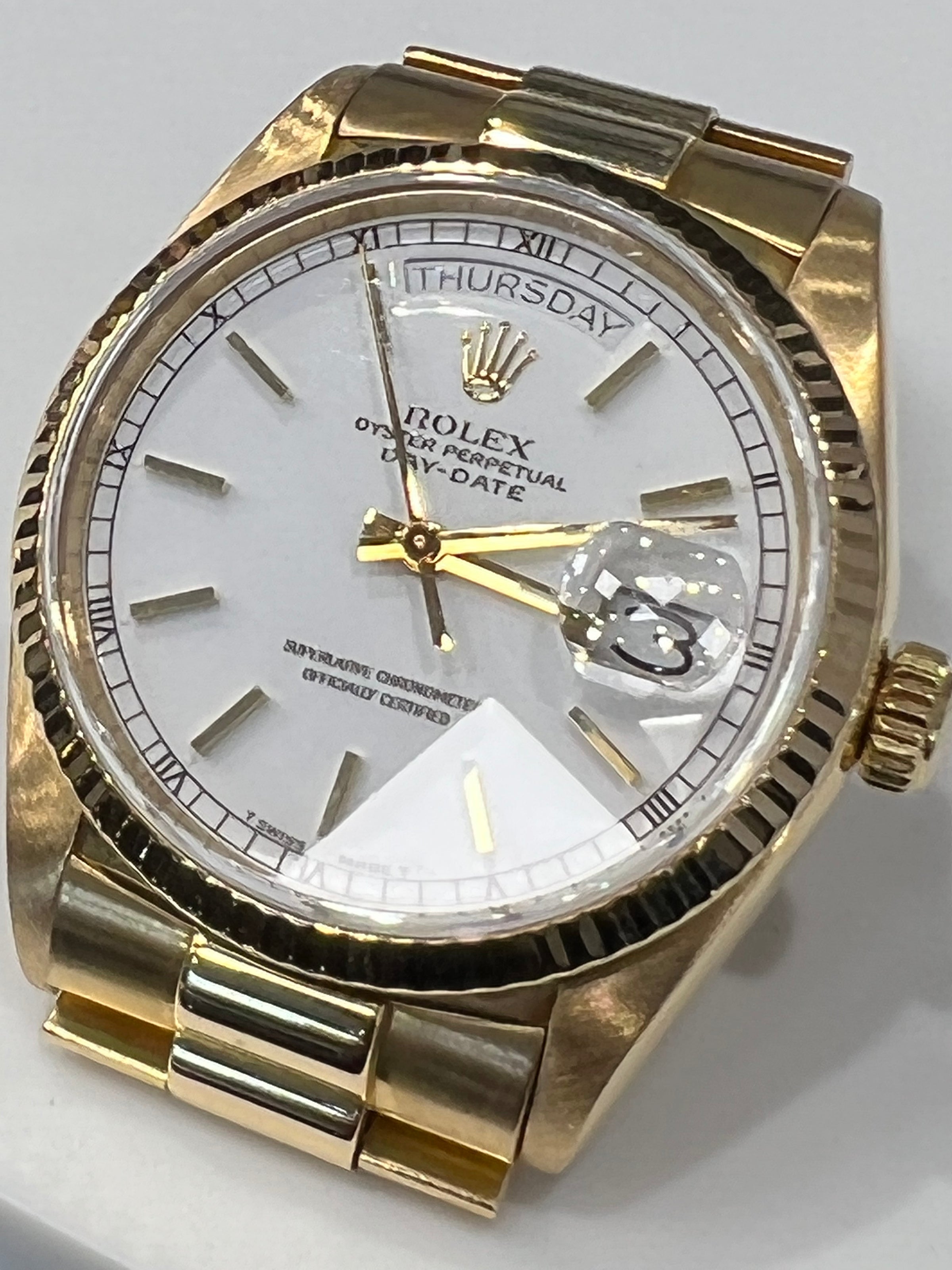 Rolex 18ct Solid Gold Daydate White Baton Dial Track Roman Numerals President Bracelet Box