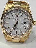 Rolex 18ct Gold DayDate White Baton Dial Track Roman Numerals President Bracelet
