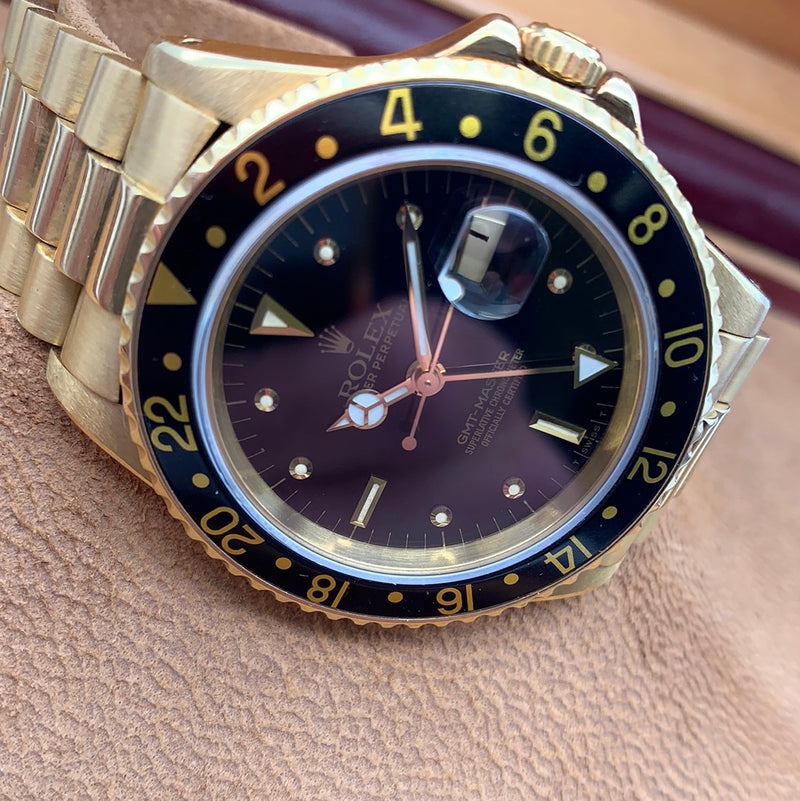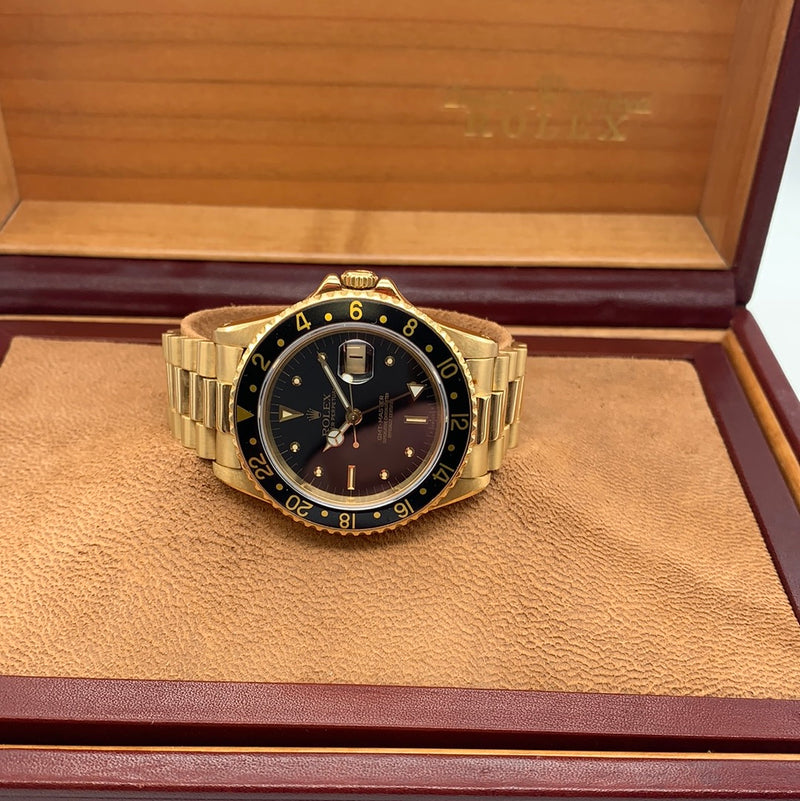 Rolex 18ct Gold GMT Black Dial Black Bezel 1983