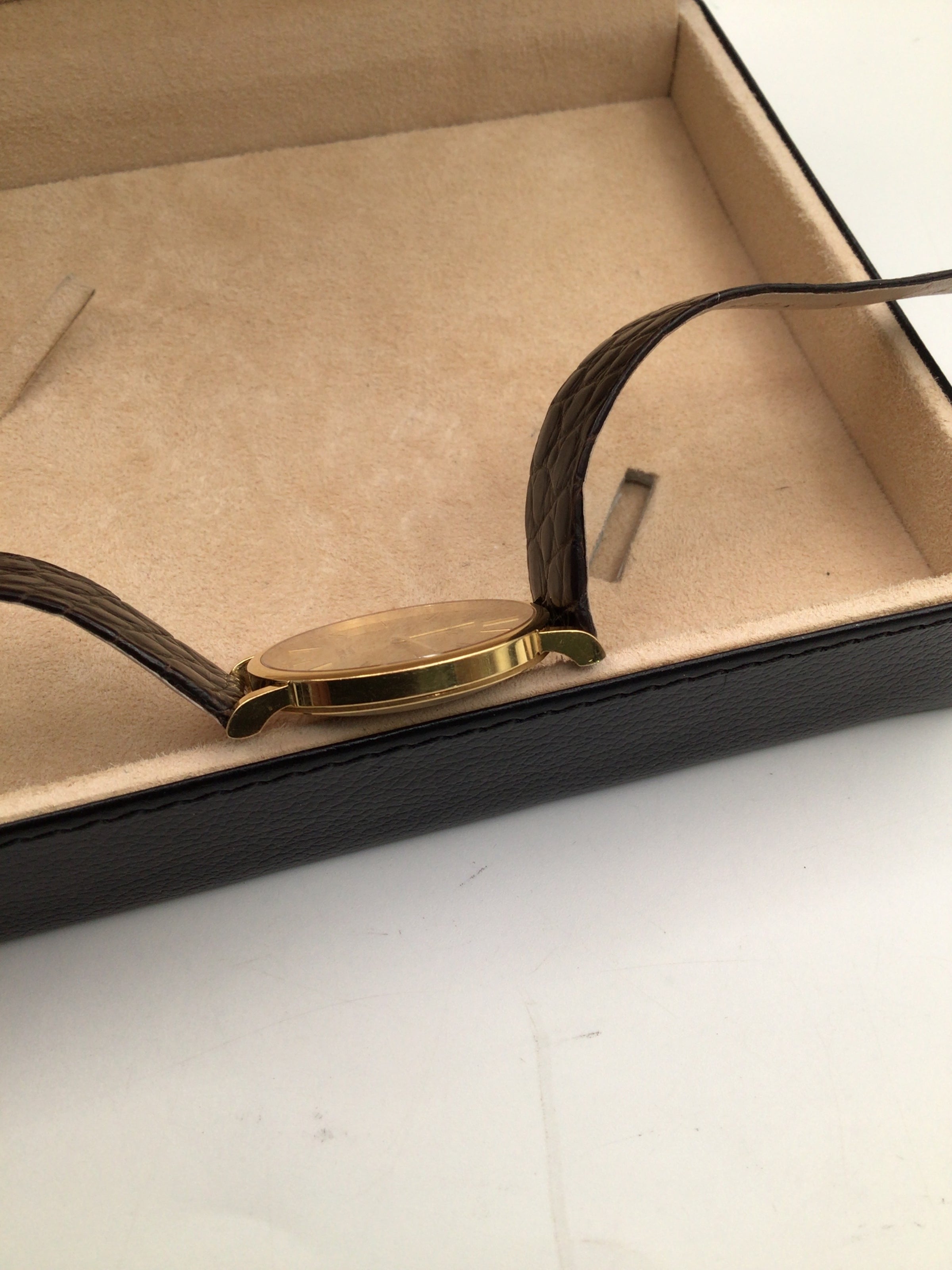 Case: Crafted from 18-carat yellow gold, the case measures 32mm in diameter, offering a sophisticated and understated presence on the wrist.