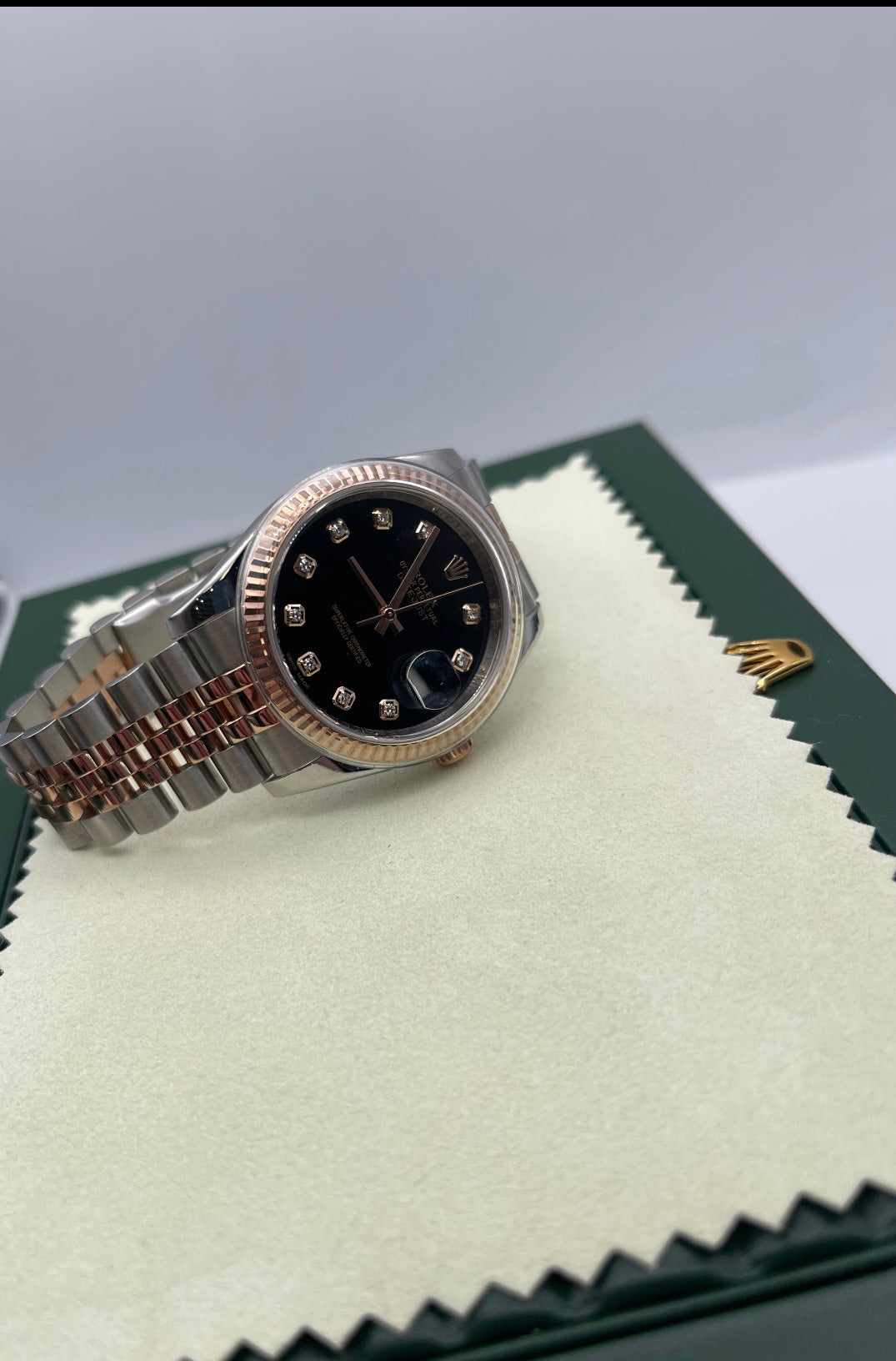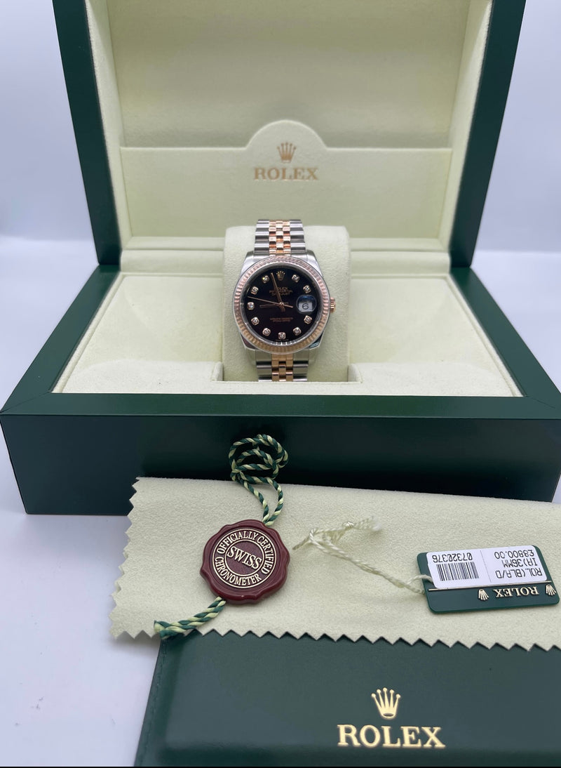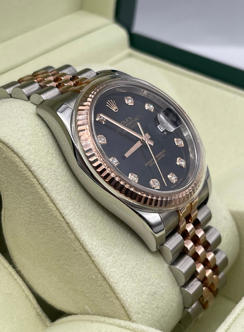 Rolex Datejust 36mm Steel and Rose Gold Ombre Brown Diamond Dot Dial