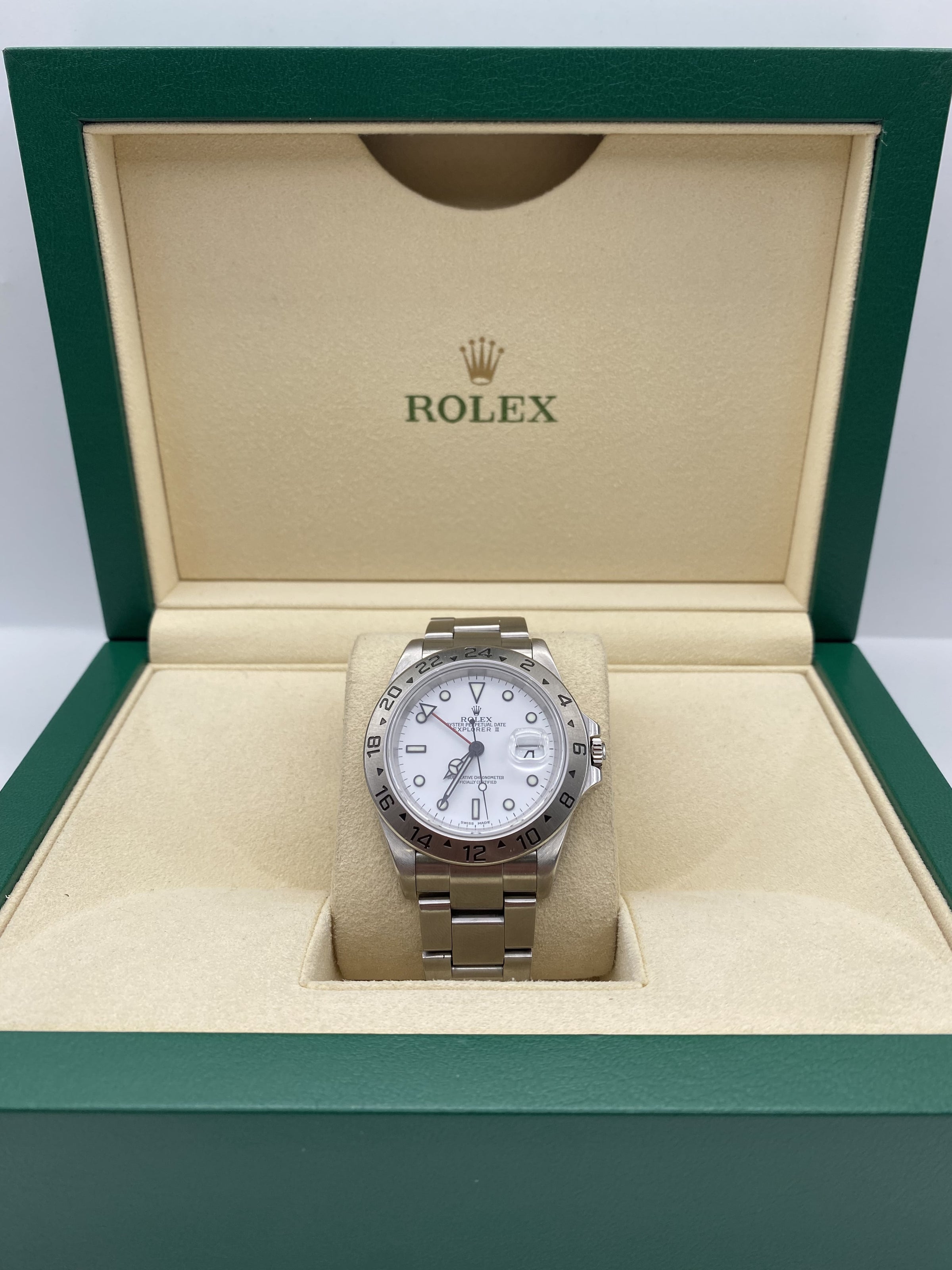 Originally introduced in 1989 and manufactured until 2011, the Rolex Explorer 16570 has a case size of 40 mm and a case thickness of 12.2 mm. It has a lug to lug measurement of 47 mm and a lug width of 20 mm, and it used the auto Rolex 3185 caliber movement. This timepiece has a power reserve of 50 hours.