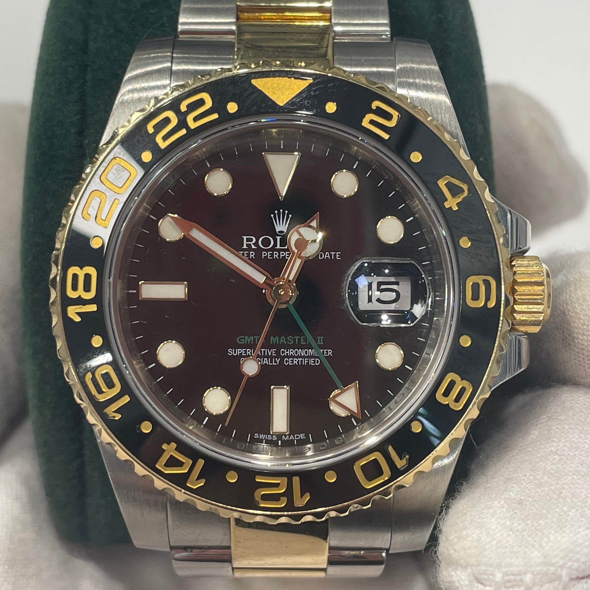Rolex GMT II Steel & Gold with Green Hand Full Set