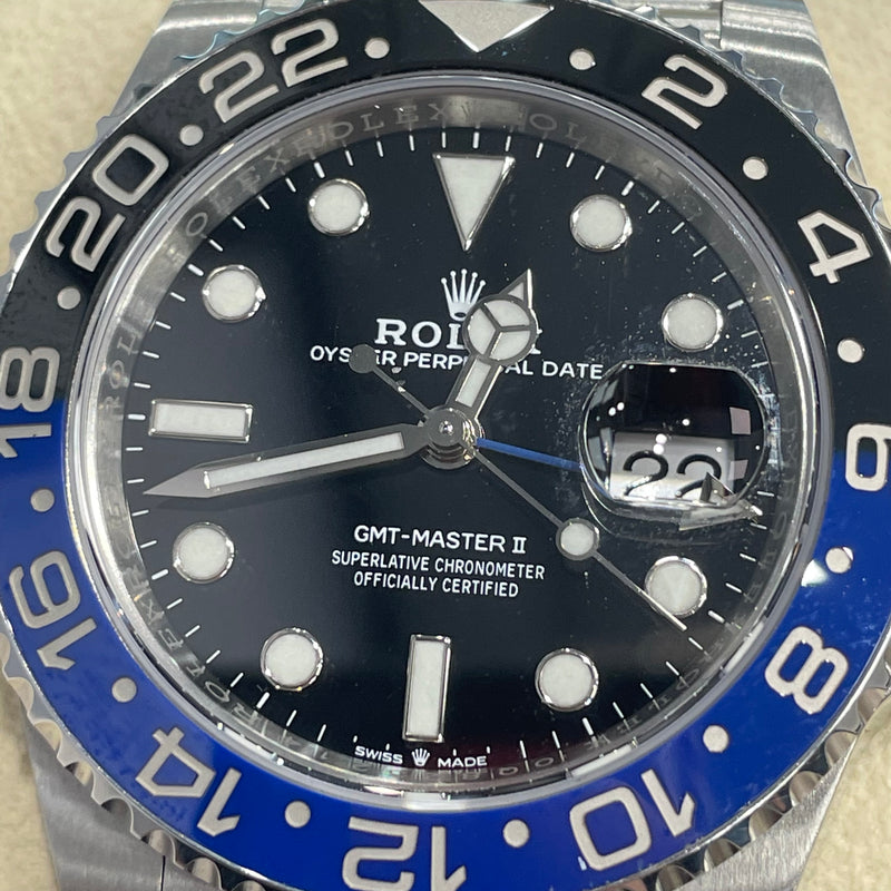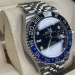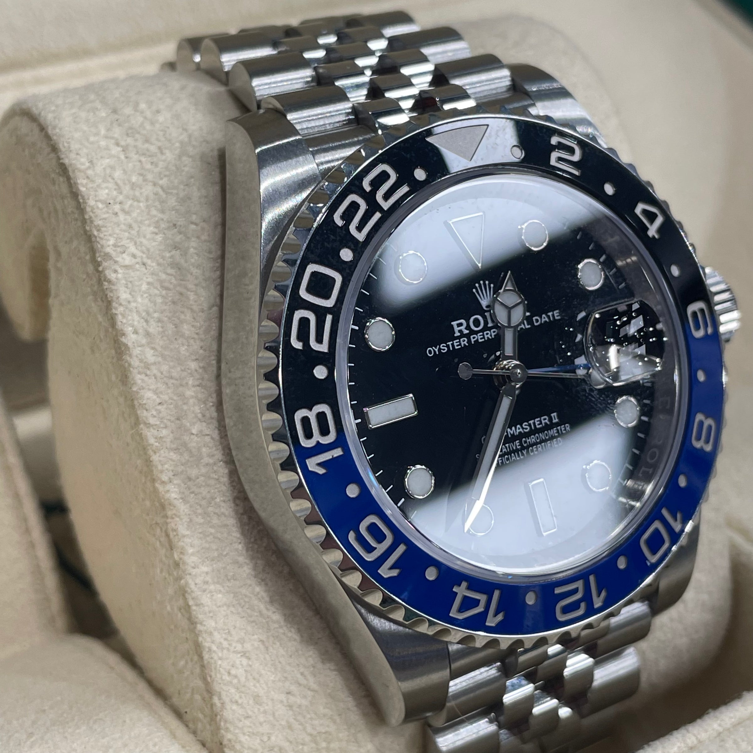 Rolex GMT Master II 126710BLNR on a jubilee bracelet.