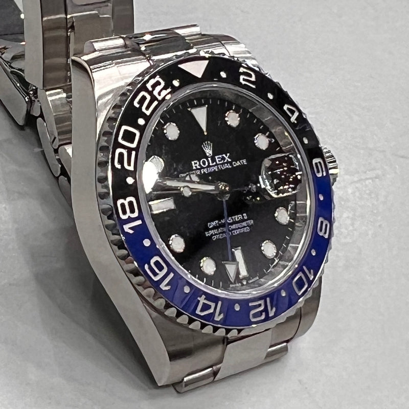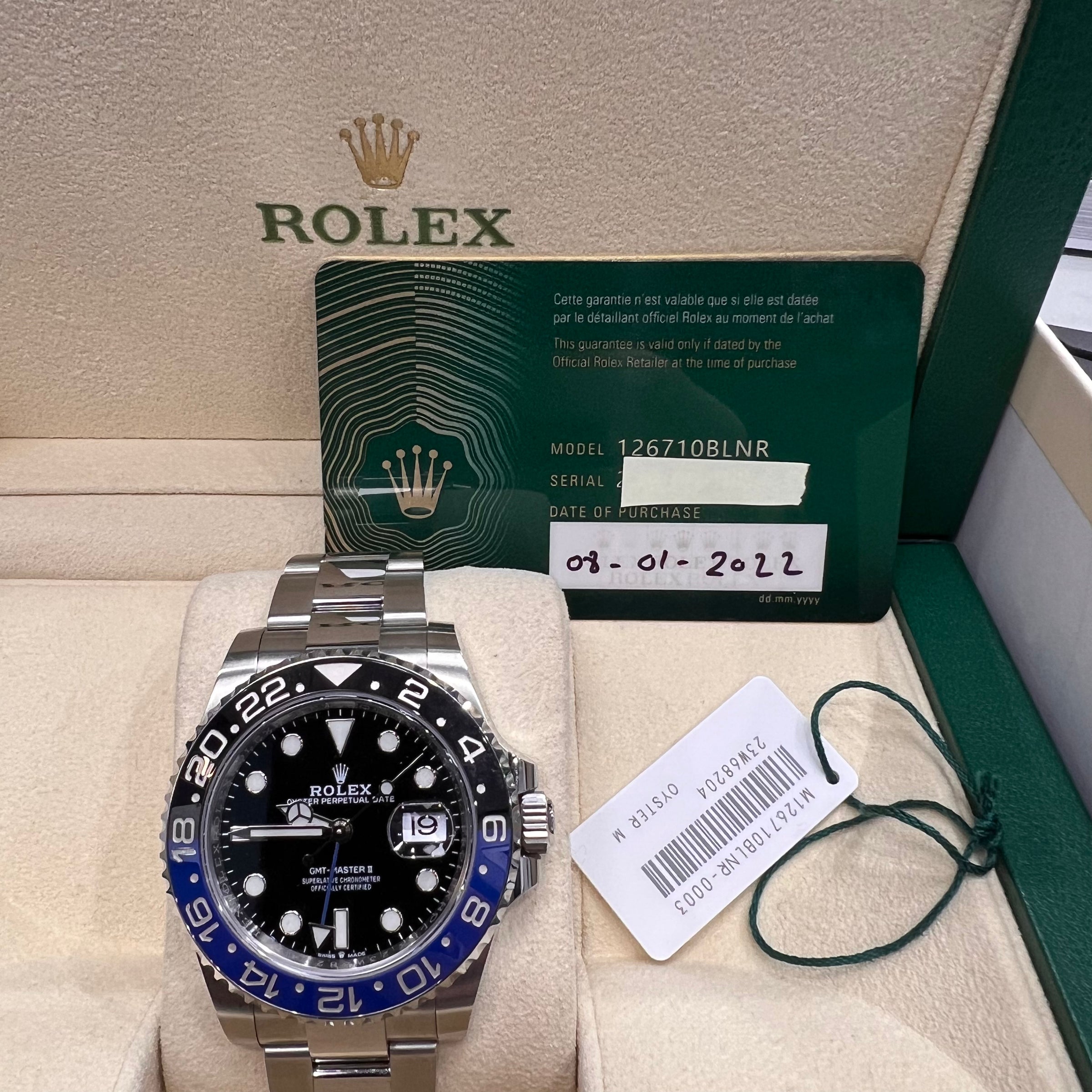 Stainless Steel Rolex GMT Master II "Batman". This watch comes in the black dial with black and blue ceramic bezel configuration on a oyster bracelet. This watch is dated 21/09/2022 and is in pristine unworn condition with no sign of wear. This watch comes with its organically box and all its original paperwork.