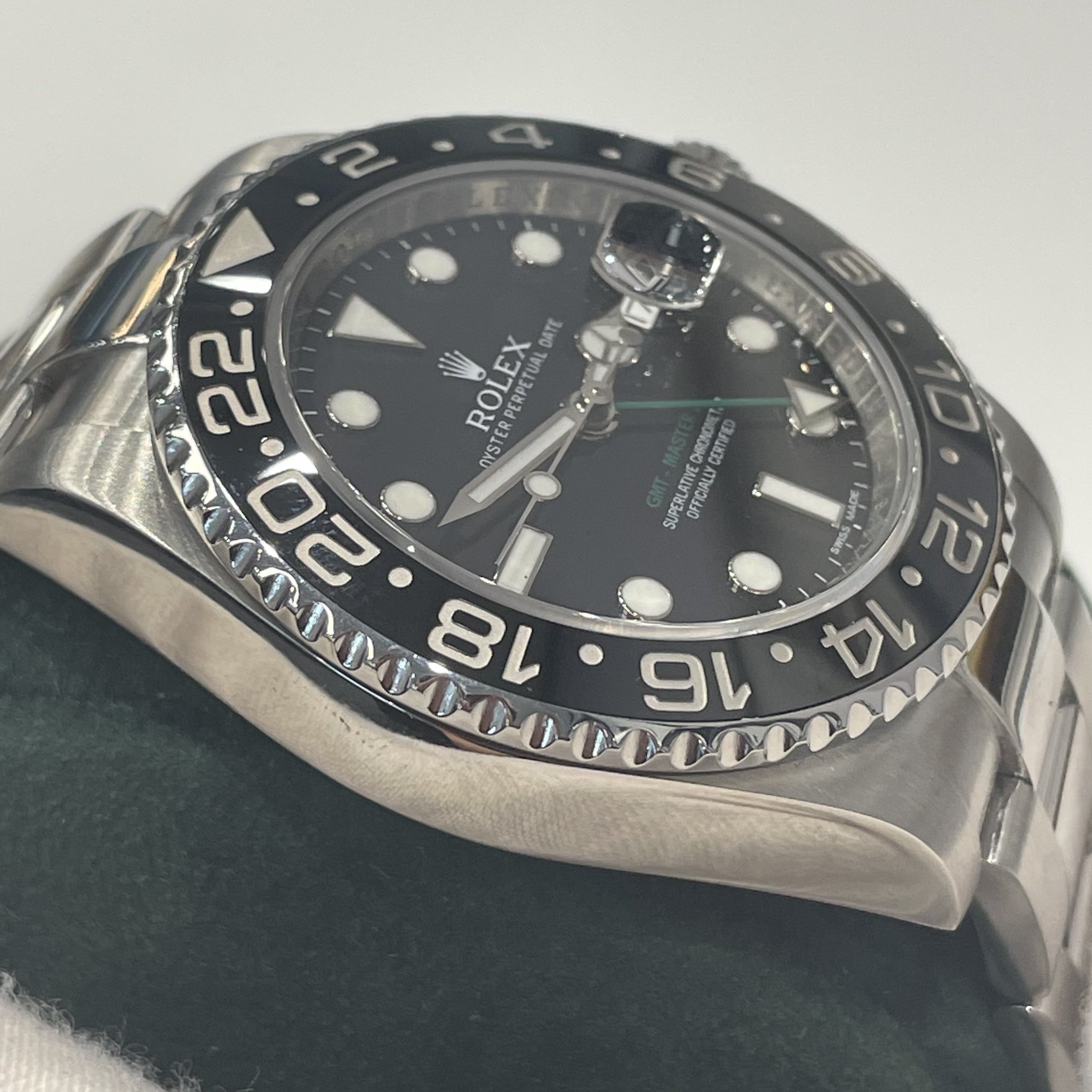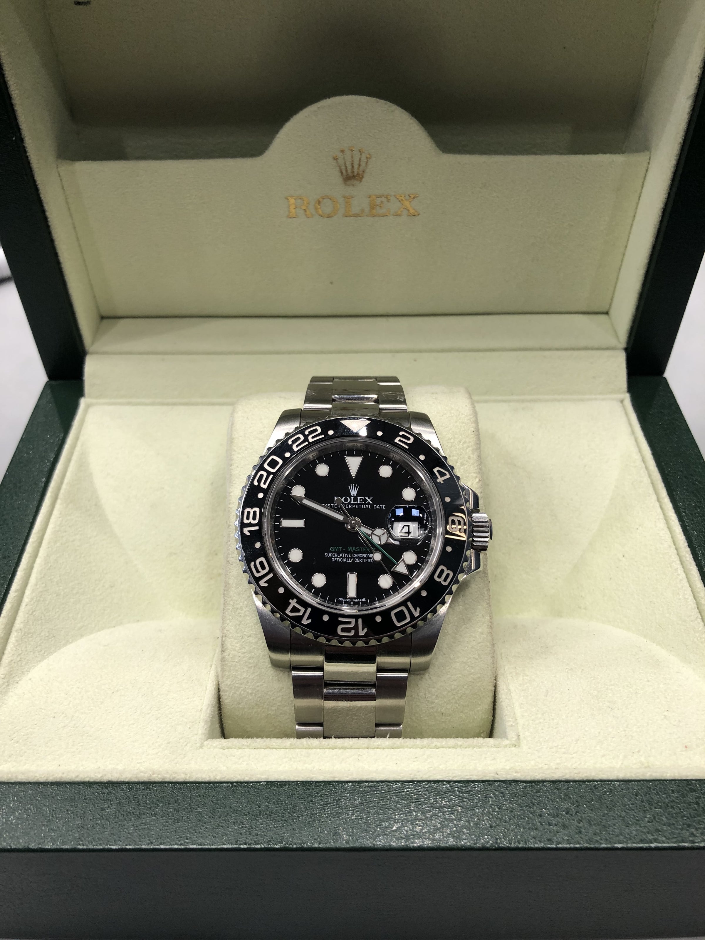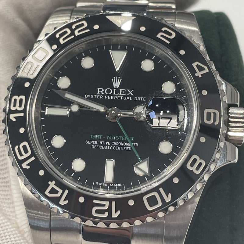 The Rolex GMT Master and Rolex GMT Master II is one of the most recognisable and desirable watches in the world. The Rolex GMT Master was released by Rolex in 1954 with the reference 6542 featured a luminous bakelite bezel insert and powered by the calibre 1036 automatic movement with GMT complication. The red/blue bakelite bezel was quickly replaced as it was easily cracked and in 1956 a metal bezel was introduced. The Rolex GMT Master evolved over the years to include the 1675, 16750, 16760, 16700, 16710 GMT Master II and 116710. The current versions of the Rolex GMT Master II include the 126710 BLRO Pepsi and 126710 BLNR 'Batgirl' - both of which are now only available on Jubilee bracelets.