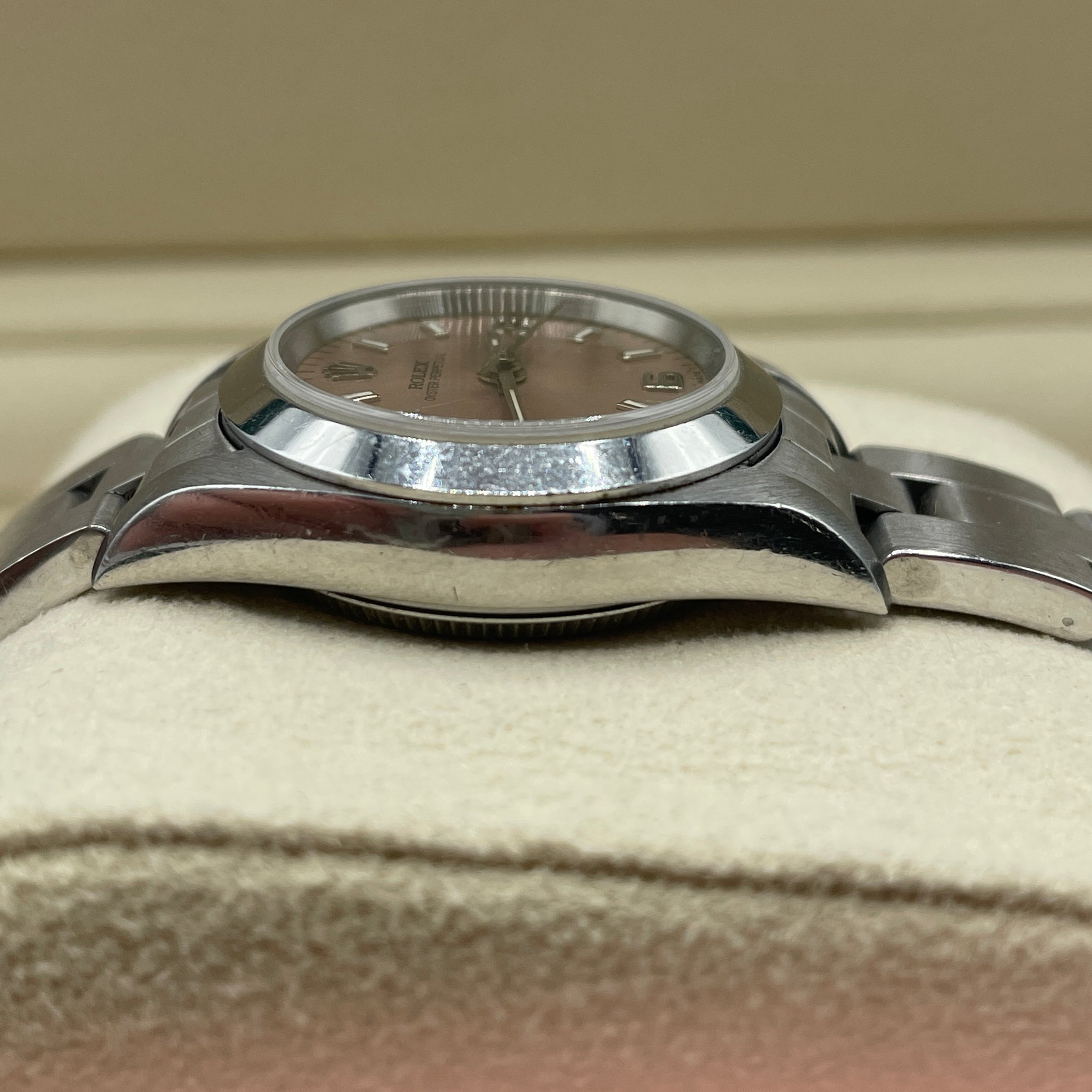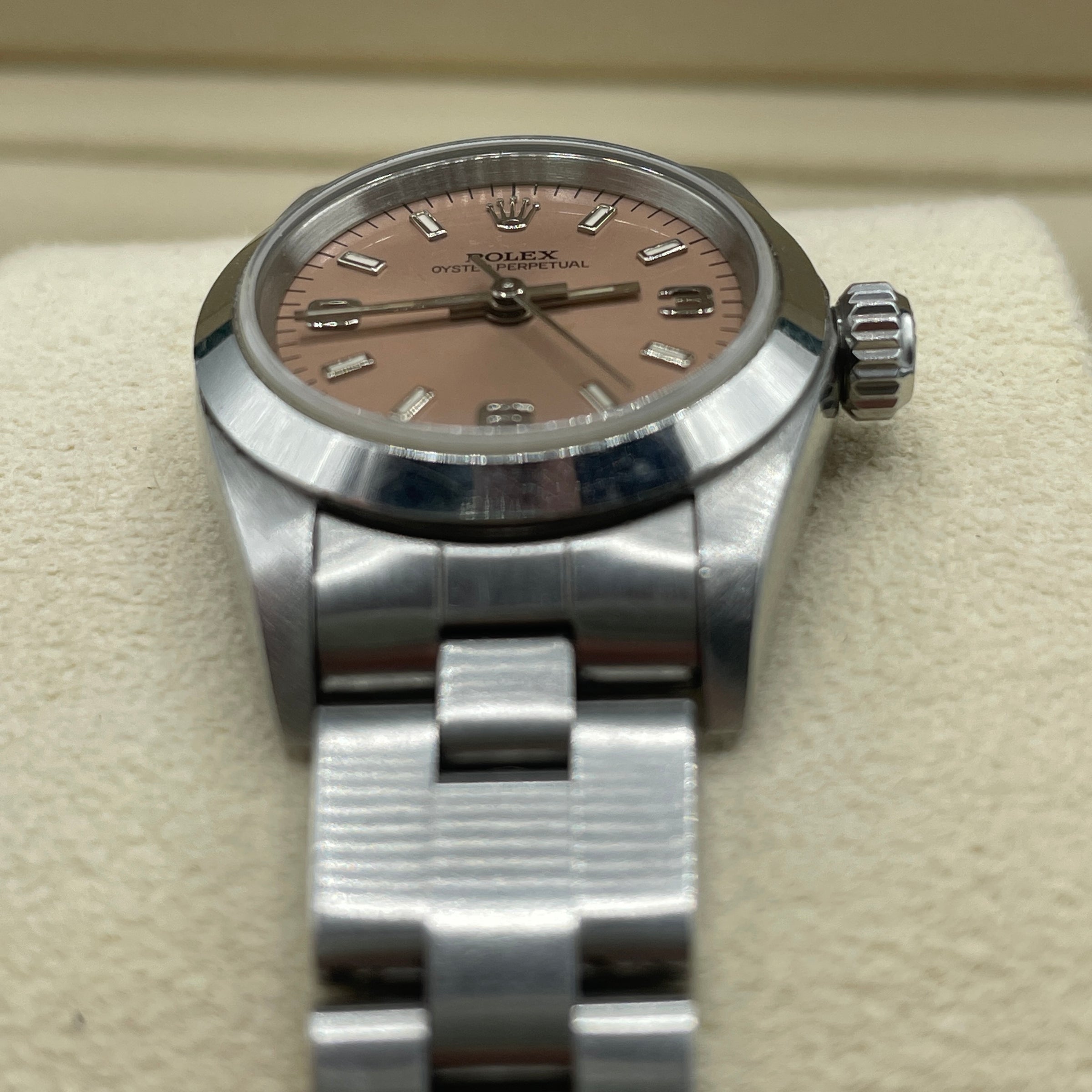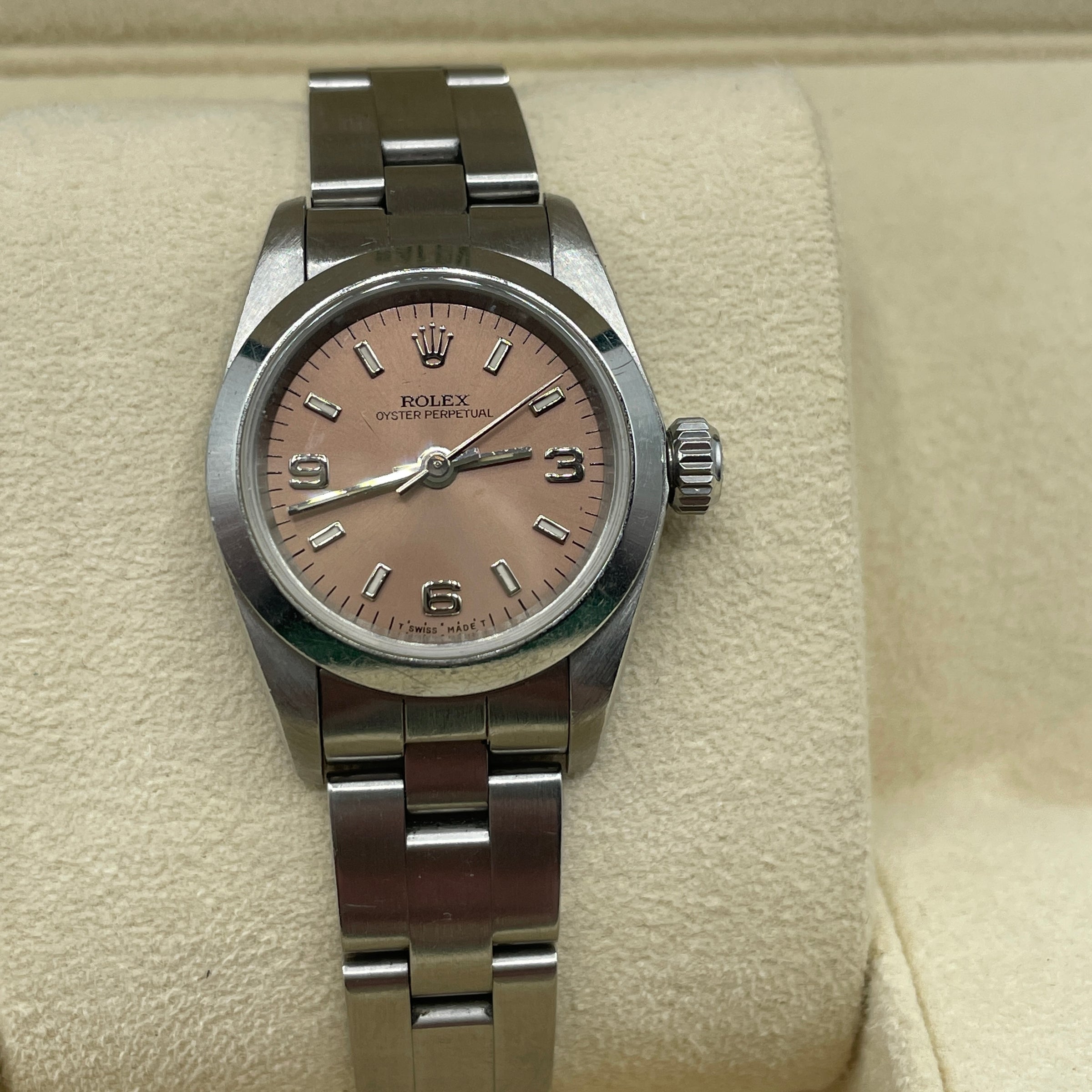 Rolex Ladies Oyster Perpetual Salmon Dial 26mm Authenticity Guarantee