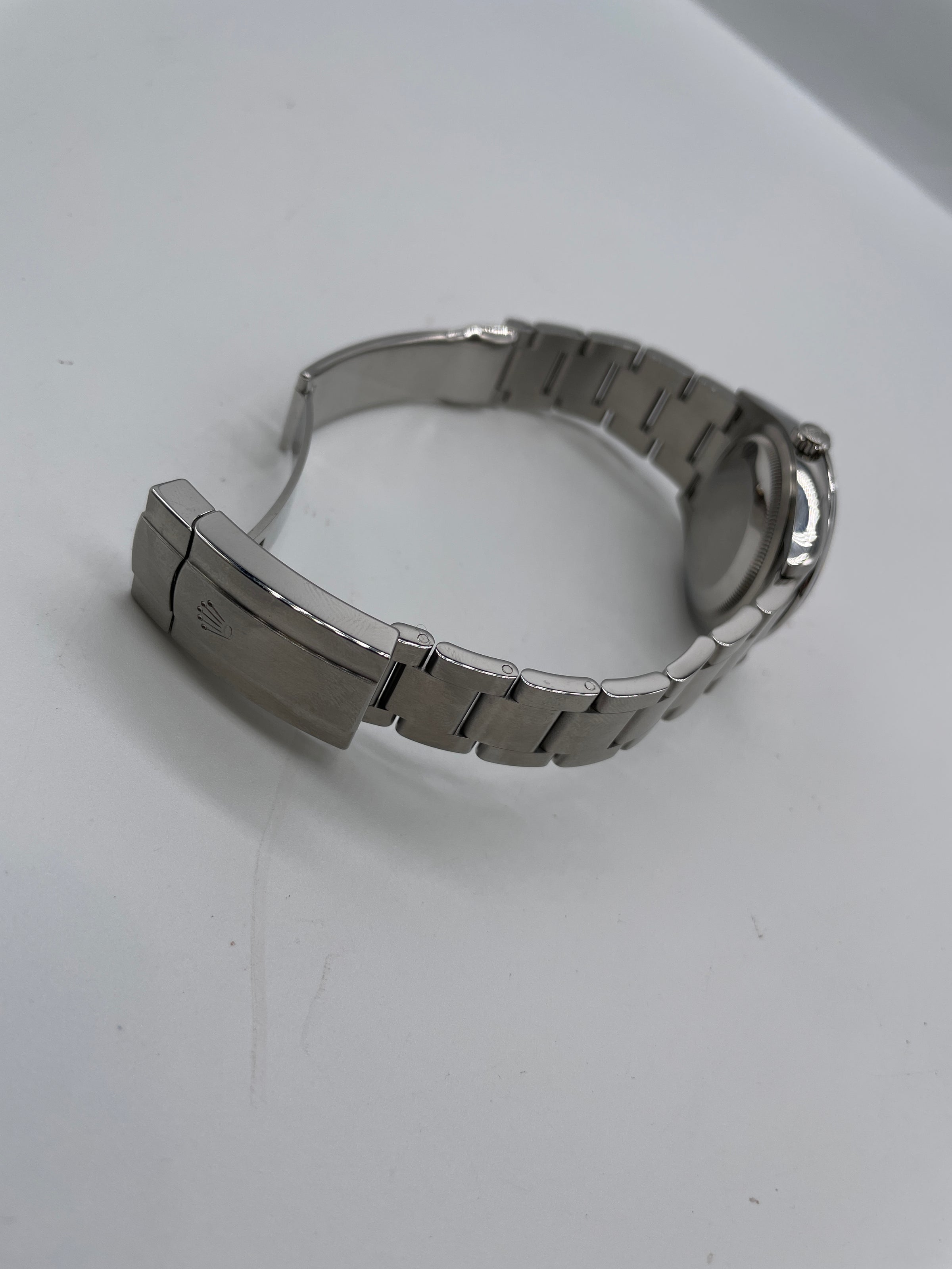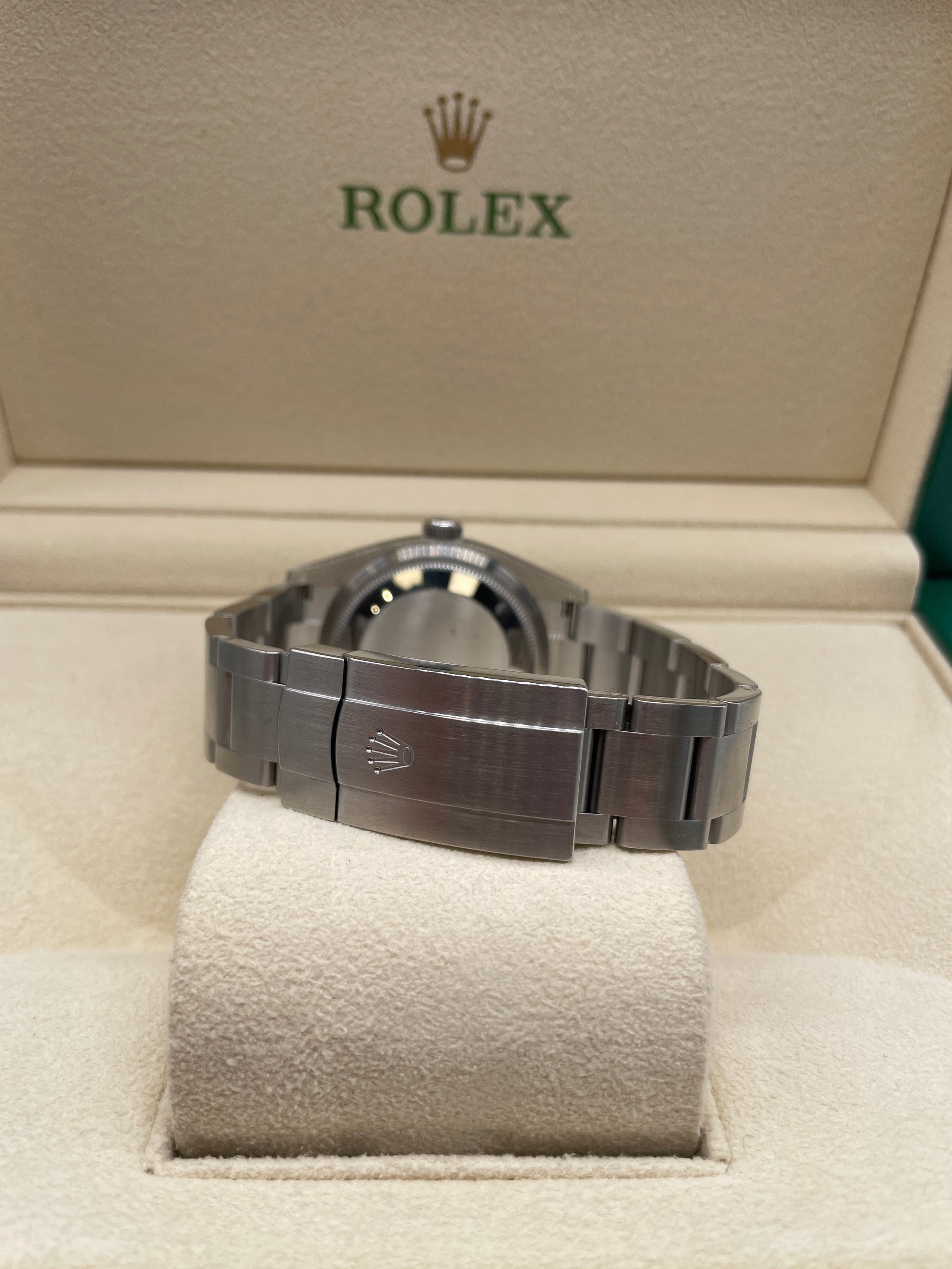 The Oyster Perpetual 36 is worn on the classic Oyster bracelet in matching steel. And uses the brand’s folding Oysterclasp with Easylink 5 mm comfort extension link. This allows you micro-adjust the length of the bracelet for the perfect fit. Last but not least, a screw-down, Twinlock crown helps ensure the 100m water resistance.