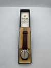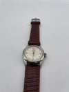 In the early 1950s Rolex released the "oyster Royal" model, another clean and reliable wrist watch. It is fitted in an 32mm Oyster stainless steel screw-down case, which was a novel design ensuring water-tightness beyond what was previously possible. Thanks to the downward sloping wide-set polished bezel, this Rolex wears larger on the wrist than its diameter might indicate. The now-famous Oyster case was first introduced in 1926, and it has evolved to become one of the most identifiable watch designs in history.