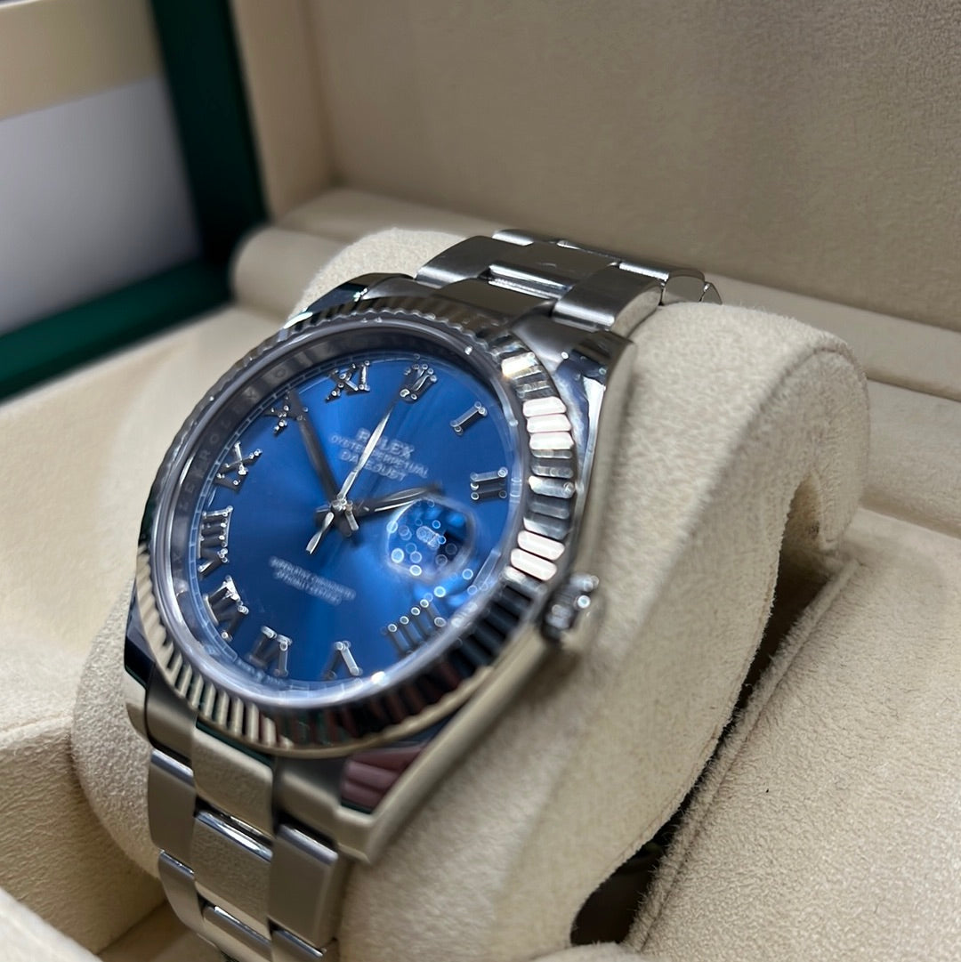 Rolex Stainless Steel Datejust 41mm Blue Roman Numeral Dial November 2020 Box and Papers in Mint Condition.