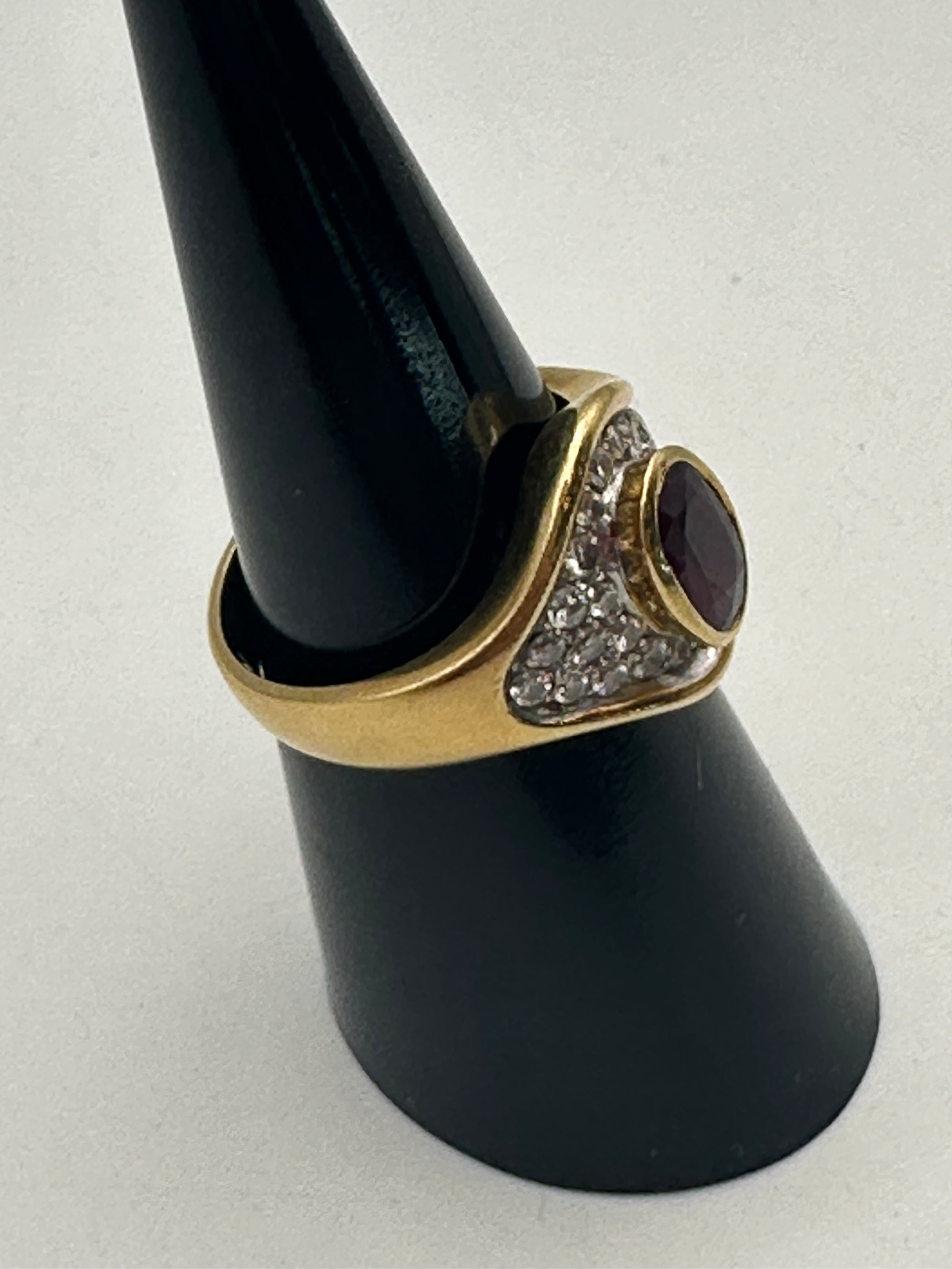 This exquisite ring embodies the timeless appeal of fine jewellery, with the ruby symbolising passion, love, and prosperity, while the diamonds represent eternal brilliance and purity. The careful combination of platinum and yellow gold ensures not only a sophisticated aesthetic but also durability, making it a cherished piece for any jewellery collection.