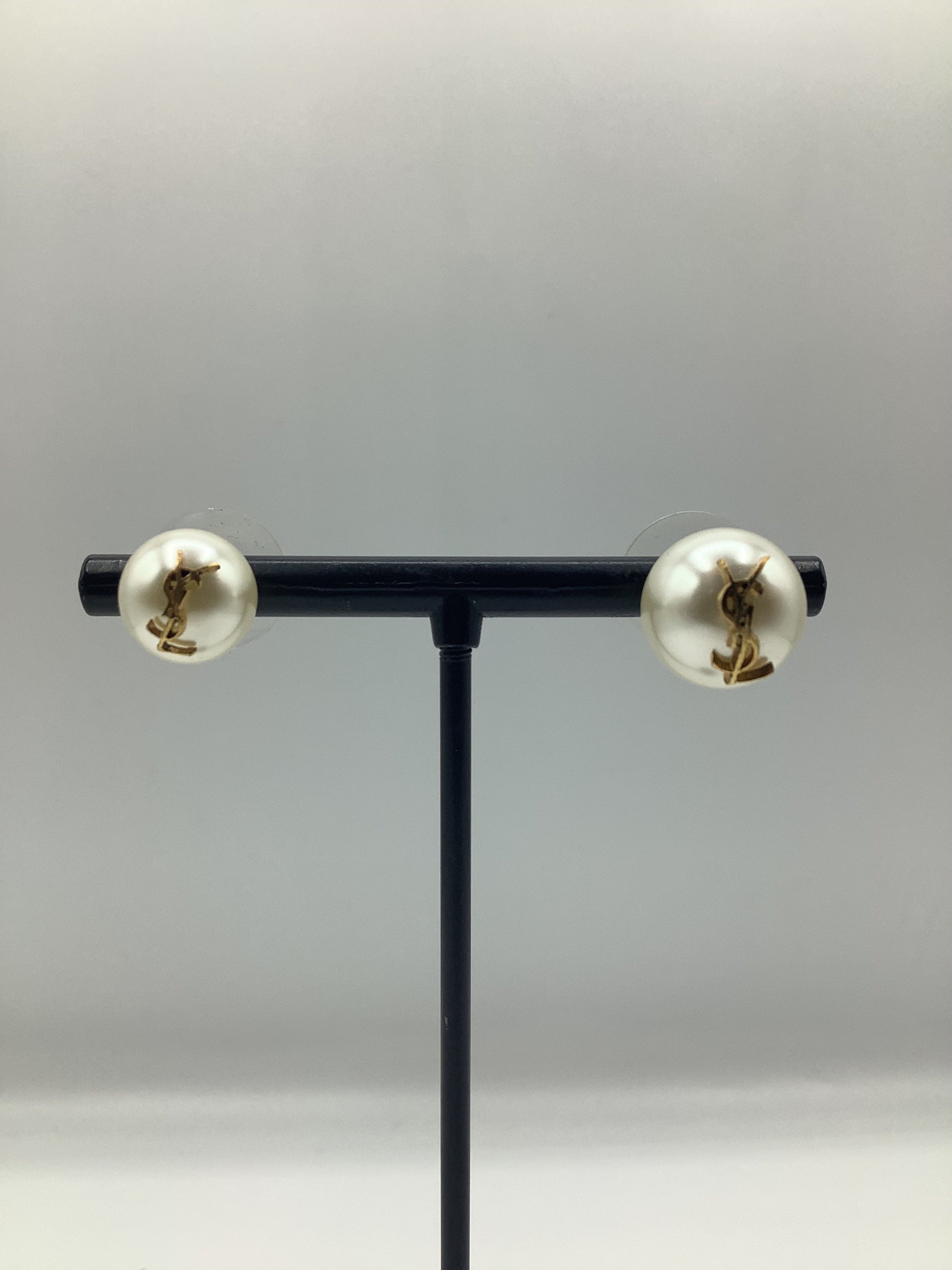 Saint Laurent Asymmetrical Pearl Stud Earrings