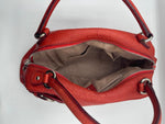 Materials & Design: The Salvatore Ferragamo Red Leather Handbag is meticulously crafted from premium calfskin leather, showcasing the brand's commitment to quality and durability. The vibrant red hue adds a bold touch to its structured silhouette, making it a standout accessory for various occasions.