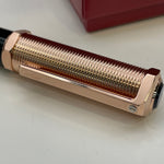 - Ballpoint design, engraved body, intricate rivets, rollerball refill included