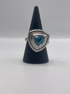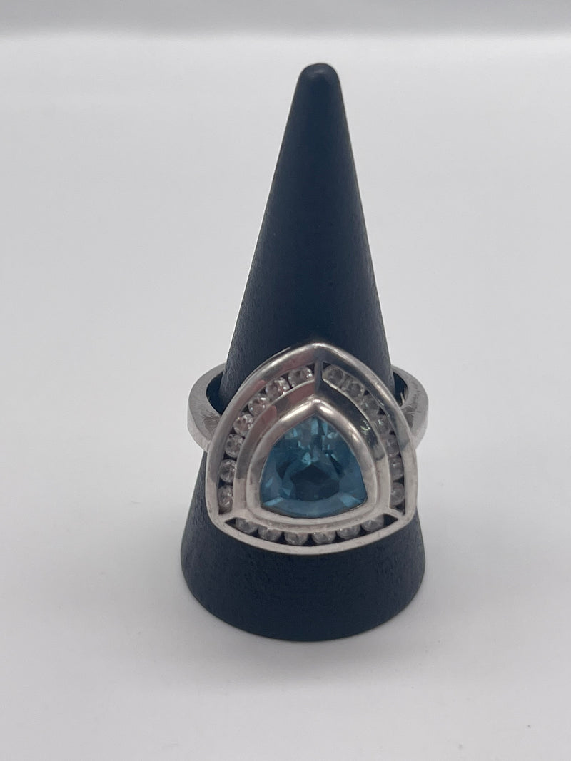 Statement Silver Ring with Triangle-Cut Topaz & Cubic Zirconia Halo