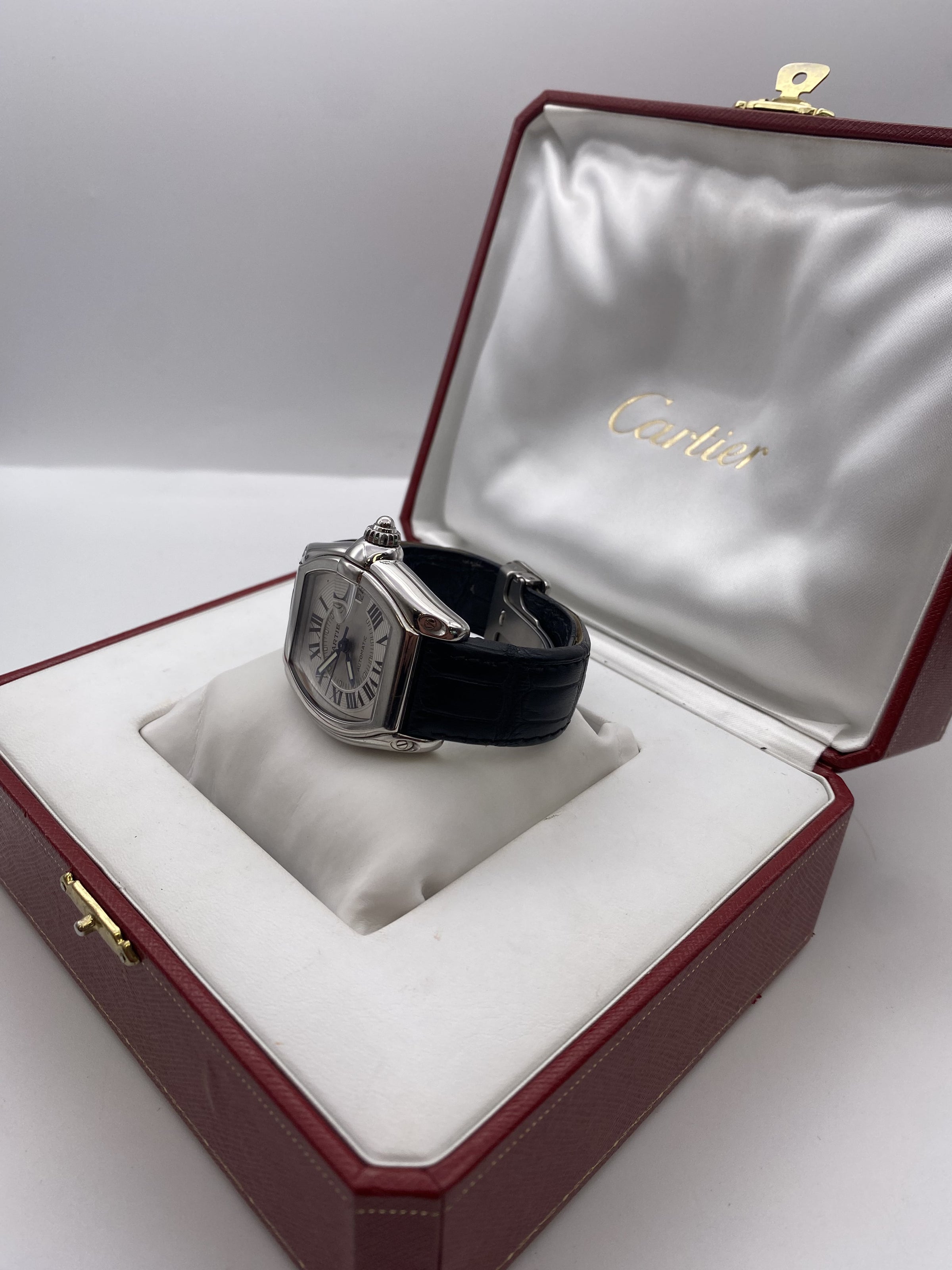 The watch series Roadster, put on the market in the year 2001, was inspired by the automotive world of the 1950s and 1960s. At that time, the first sports car with racy curved bodies came on the market, the “roadster”. The design of the Roadster watch takes on the silhouette of these vehicles.