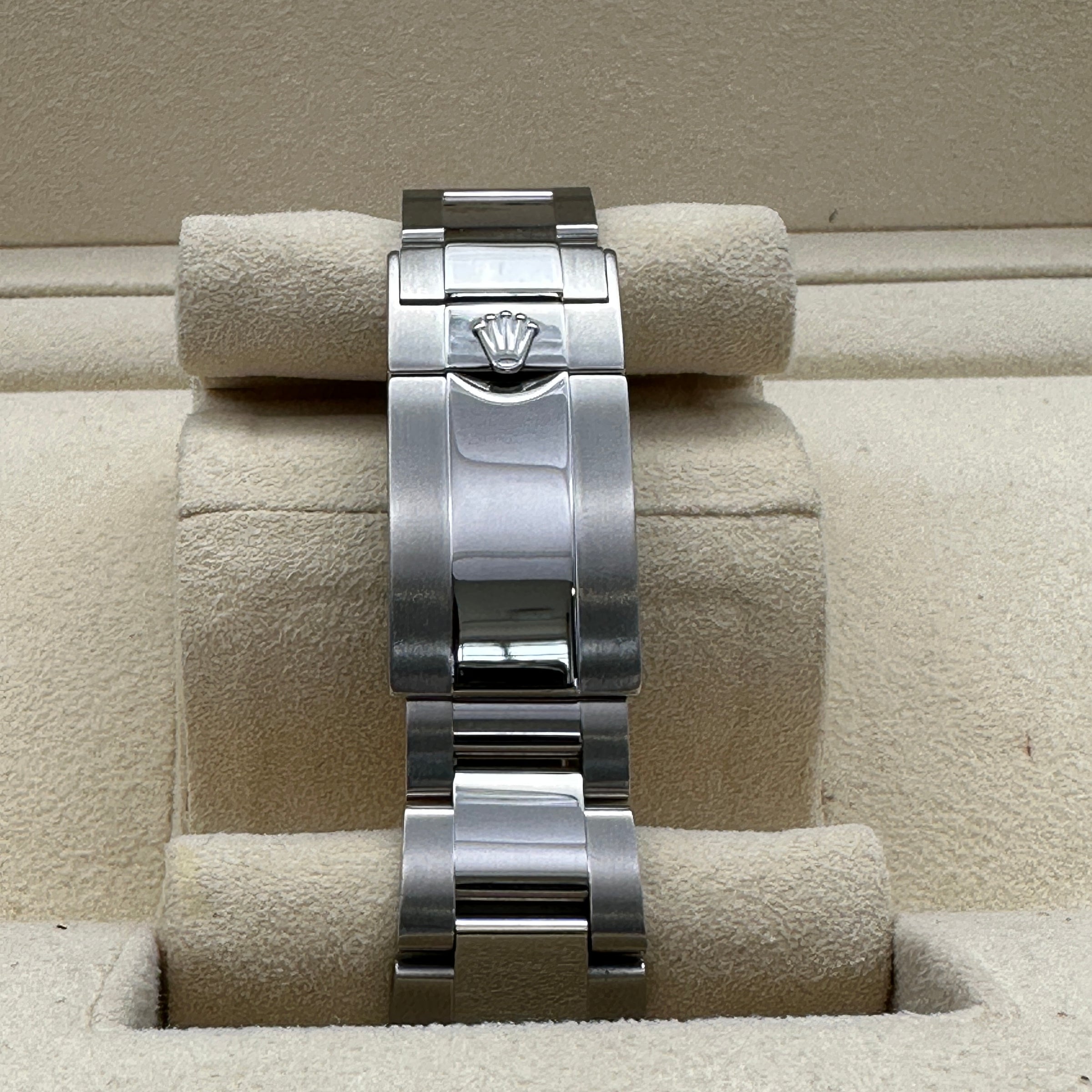 This watch features a 40mm stainless steel case, black dial and stainless steel bezel and a Rolex 4130 automatic movement.