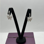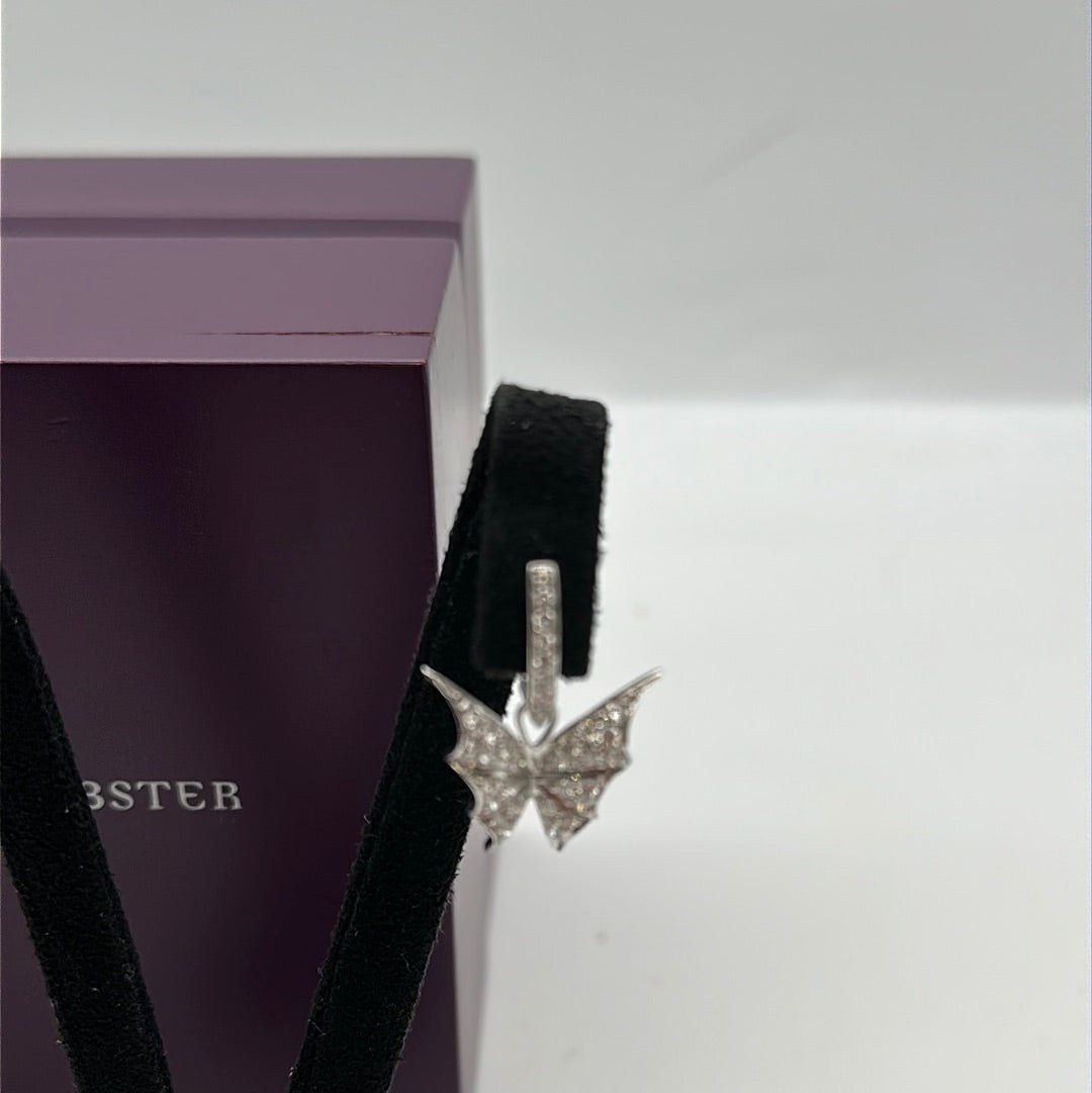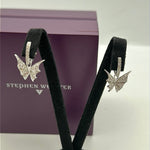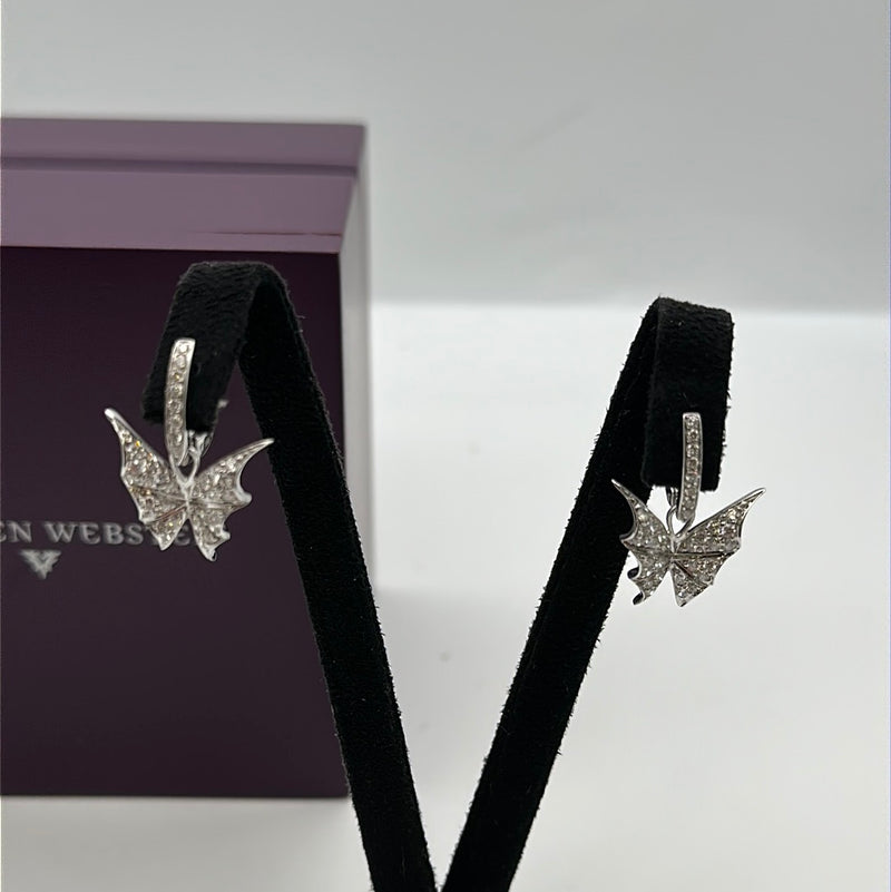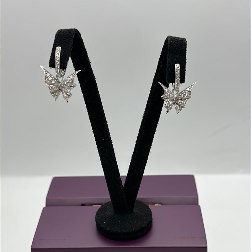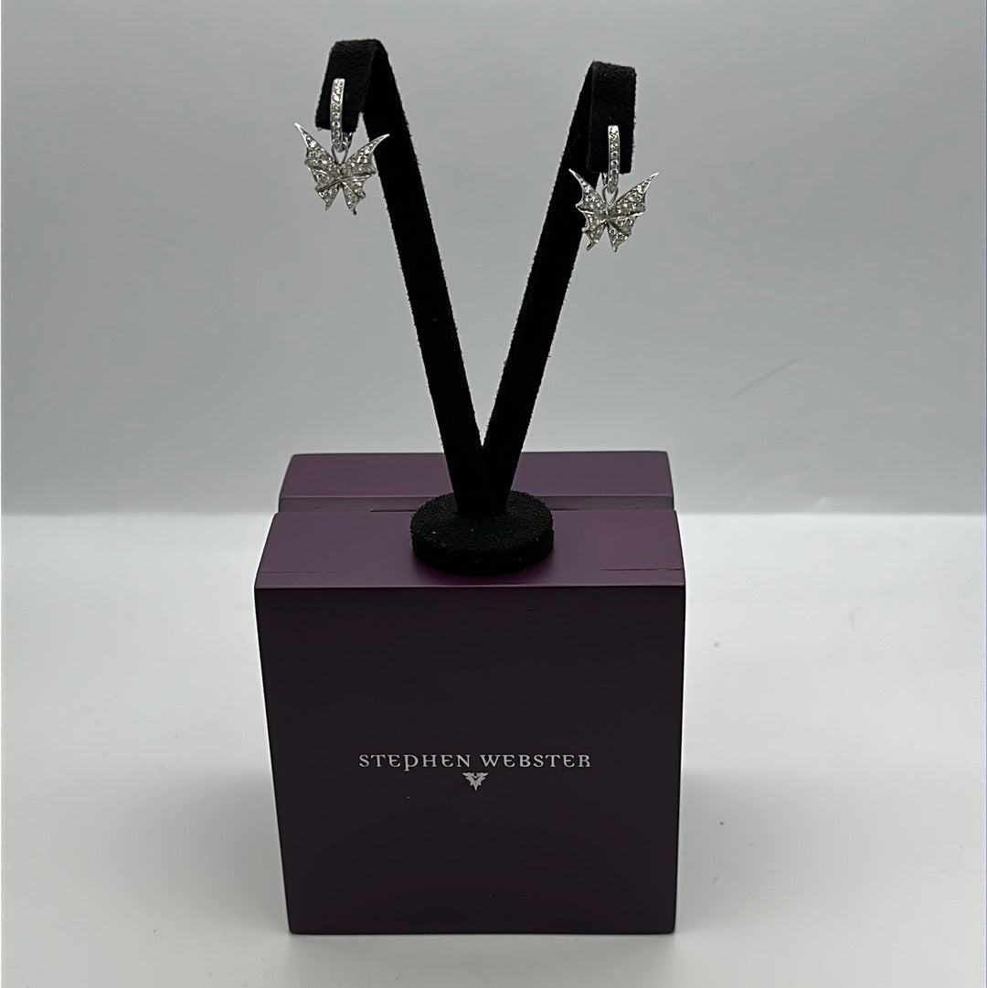 Stephen Webster 18ct White Gold Diamond Butterfly Earrings, Small Diamond Huggie With Butterfly Hanging, Set With Small Brilliant Cut Diamonds In A pavie Setting.