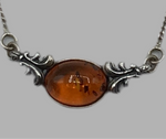 This elegant pendant features a single oval-shaped amber gemstone, securely set in a rub-over sterling silver setting for a sleek and polished finish.