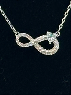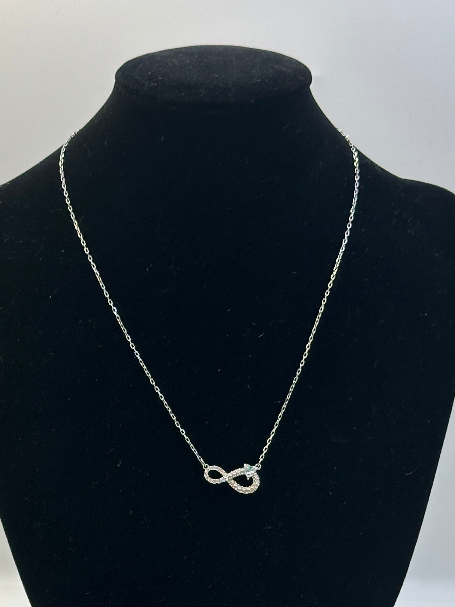 Pendant: Infinity symbol set with clear Swarovski crystals.