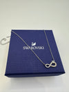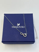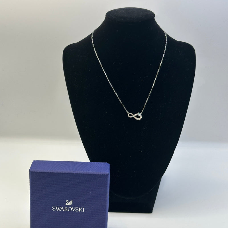 The Swarovski Infinity Necklace is a timeless piece crafted with rhodium plating for a sleek, polished finish. At the centre is a delicately formed infinity symbol—elegantly curved and adorned with shimmering Swarovski crystals, representing eternal love and enduring elegance. Its minimalist yet luxurious design makes it ideal for both everyday wear and special occasions. -