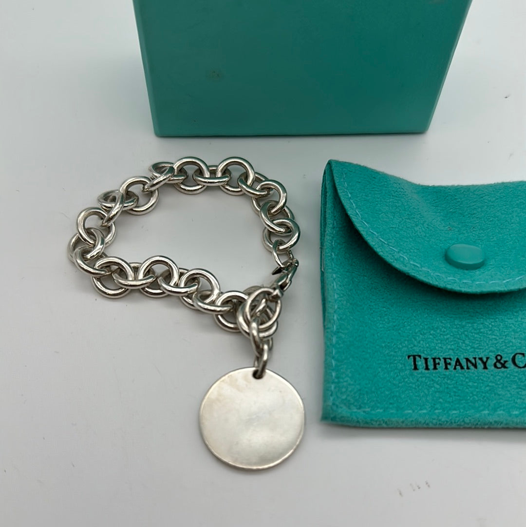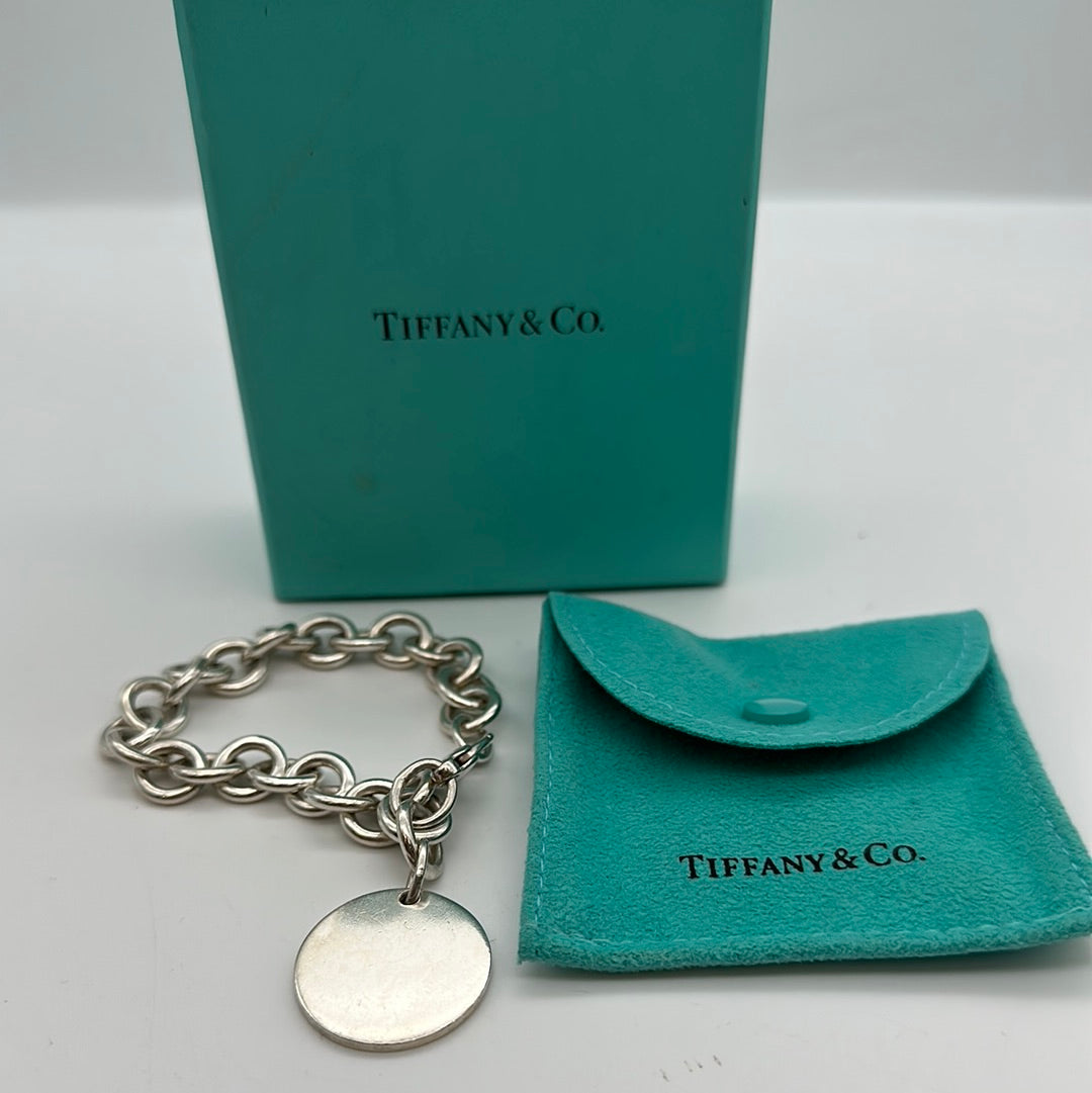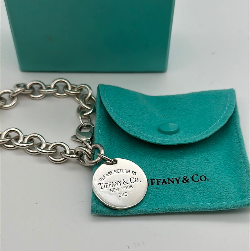 Inspired by the iconic key ring first introduced in 1969, the Return to Tiffany collection is a classic reinvented. Designed with an oversized round tag charm, the iconic design of this bracelet makes a bold style statement.